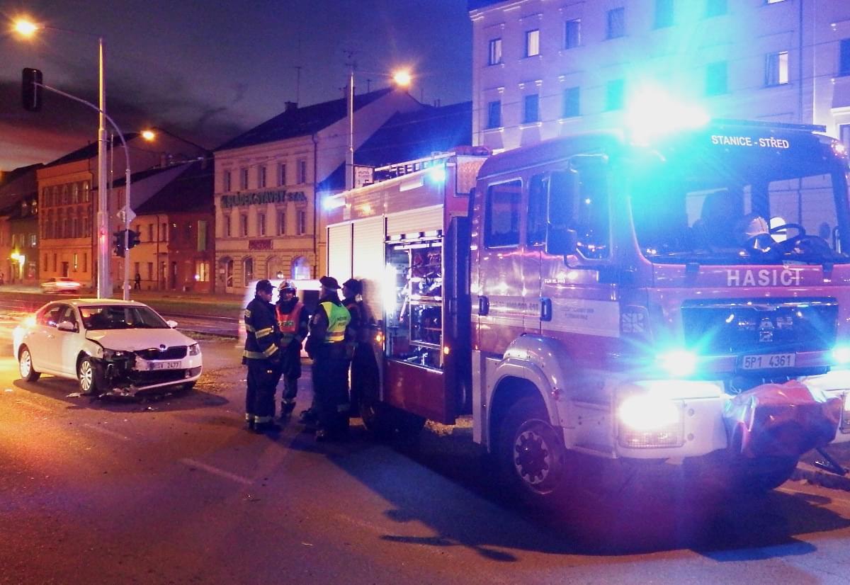 Vážné nehody v Plzni: Převrácený vůz strážníků i havárie skútru
