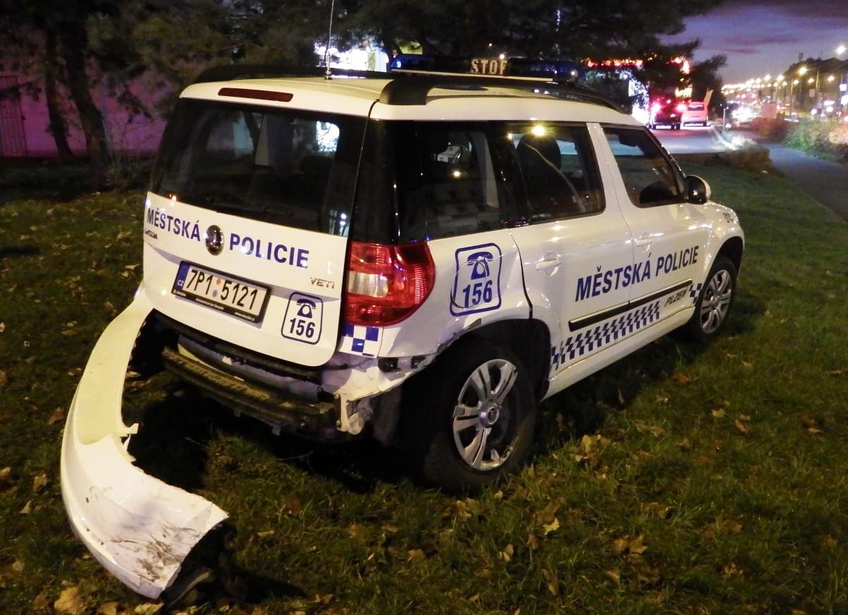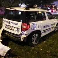 Neovladatelný vůz strážníků se zlomenou zadní nápravou po nárazu skončil až na trávníku mezi křižovatkou a benzínovou pumpou. Na místo vyrážely všechny záchranné složky a ukázalo se, že zranění utrpěli oba strážníci. Jejich zranění by však podle informací z místa neměla být vážná.