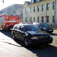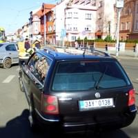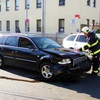 Dnes před druhou hodinou odpoledne došlo na křižovatce Klatovské a U Borského parku k čelnímu střetu osobních vozů Volkswagen Passat a Peugeot 207.