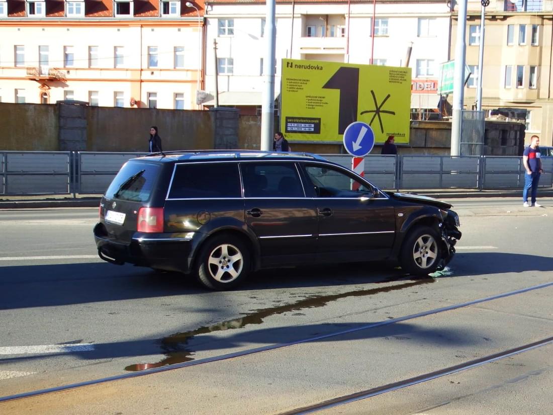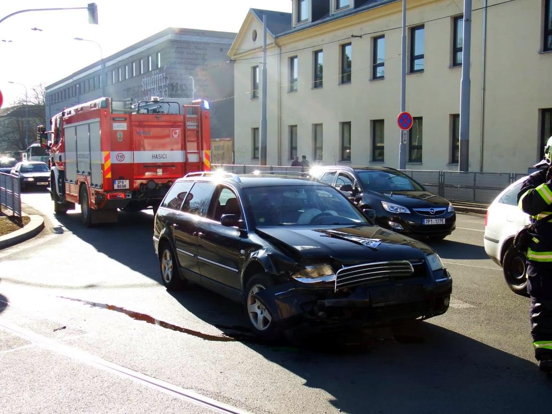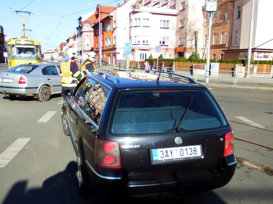 Dnes před druhou hodinou odpoledne došlo na křižovatce Klatovské a U Borského parku k čelnímu střetu osobních vozů Volkswagen Passat a Peugeot 207.