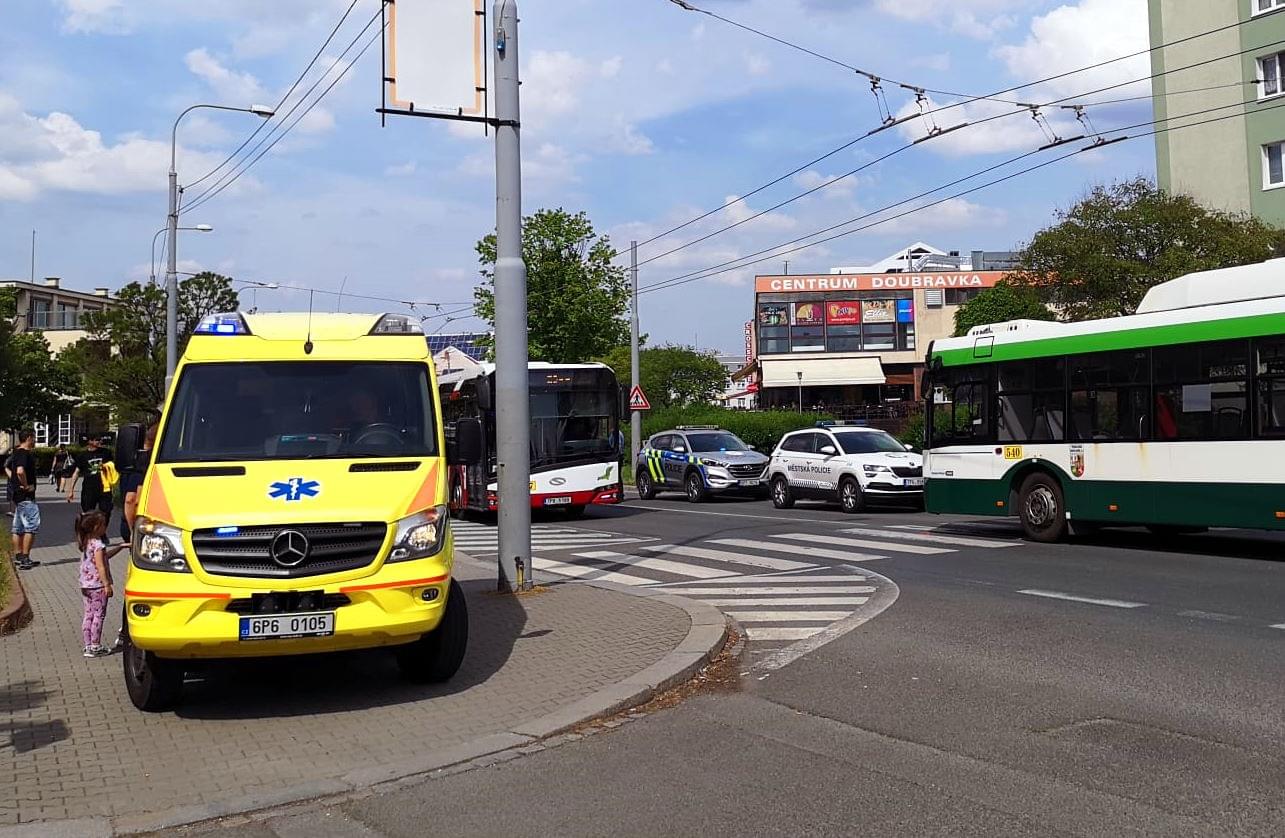 Dnes před třetí hodinou odpoledne došlo v Masarykově ulici v Plzni k nehodě, při které trolejbus linky 16 jedoucí směrem na konečnou na Doubravce na přechodu pro chodce srazil asi desetiletého chlapce. Podle informací z místa malý chlapec jedoucí na elektrokoloběžce náhle vjel z pravé strany přímo před projíždějící trolejbus, jehož řidič se sice ještě pokusil zabránit střetu, ale prudce brzdící trolejbus chlapce zasáhl a srazil na zem.K nehodě vyjely všechny záchranné složky, zásah hasičů však na místě nebyl potřeba. Zraněného chlapce si do péče převzali záchranáři a po ošetření na místě ho transportovali do nemocnice. "Záchranáři transportují dítě při vědomí na Urgentní příjem Fakultní nemocnice Plzeň s lehkým zraněním k ošetření a následné observaci," uvedla nám mluvčí záchranářů.