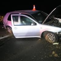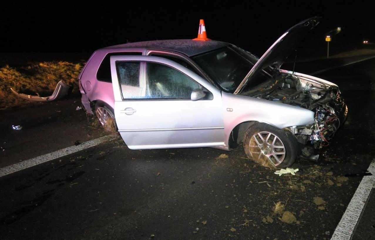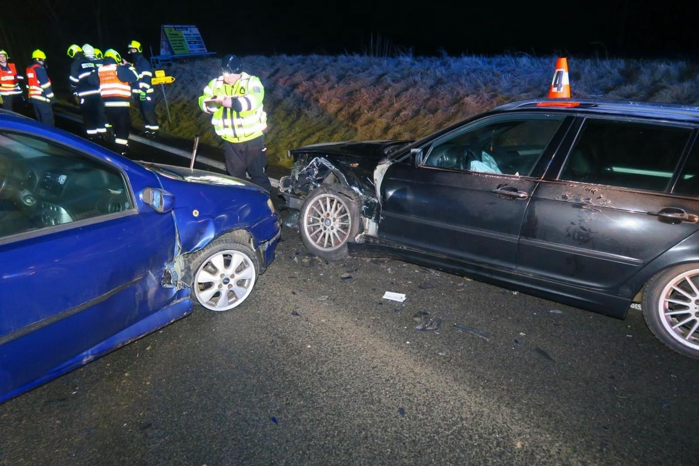 K první nehodě zde došlo dvacet minut před pátou. "Třiadvacetiletý řidič vozidla Volkswagen Golf jedoucí ve směru ze Kdyně na obec Domažlice nepřizpůsobil rychlost jízdy a na namrzlém povrchu silnice dostal s vozidlem smyk, následkem kterého vyjel vlevo do protisměru a následně mimo silnici, kde vjel do silničního příkopu. Poté byl odražen s vozidlem zpět na silnici, kde zůstat stát," popsala tisková mluvčí policie s tím, že řidič tvrdil, že do protisměru vjel, protože se lekl předjíždějícího protijedoucího vozidla a zareagoval tak, aby se s tímto vozidlem nestřetl.