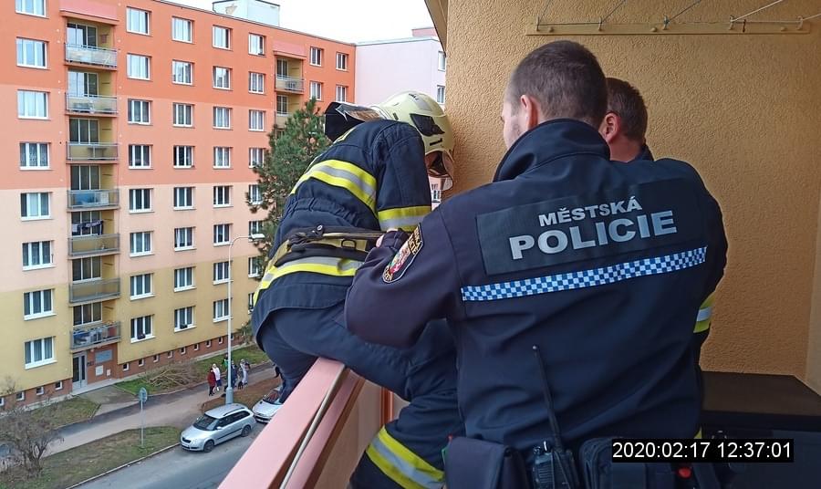 Včera krátce po poledni přijal operační strážník na lince městské policie telefonát starší ženy z Komenského ulice v Plzni. Žena žádala pomoc pro svoji sousedku, že ta je prý uvězněná na balkonu svého bytu ve čtvrtém patře.