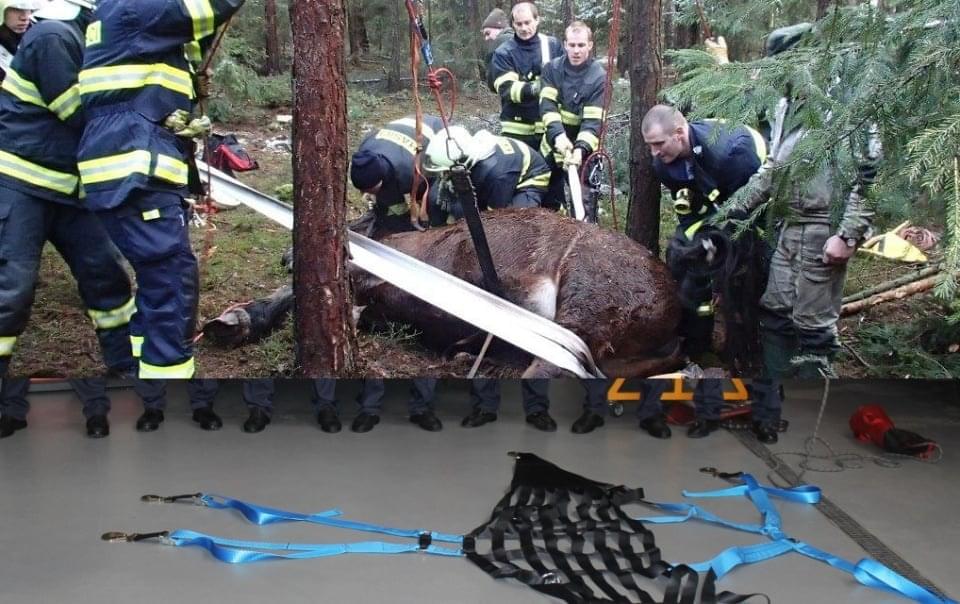Hasiči tak brzy zjistili, že síť je opravdu dobře vymyšlená, rozkládá váhu celého zvířete a je důležitý i takový detail, kde má síť přední a zadní část.