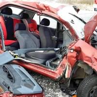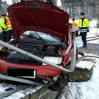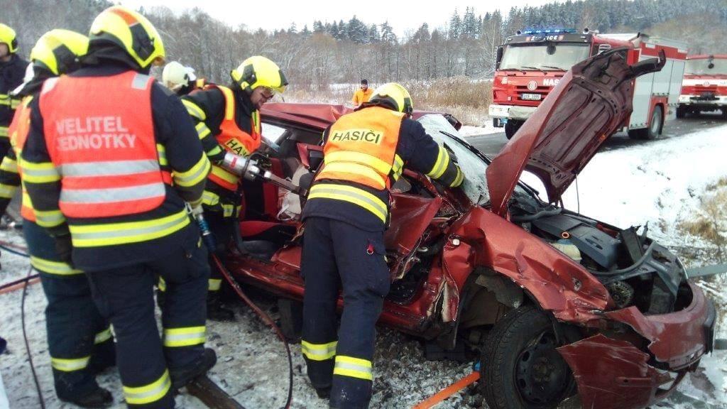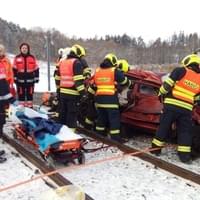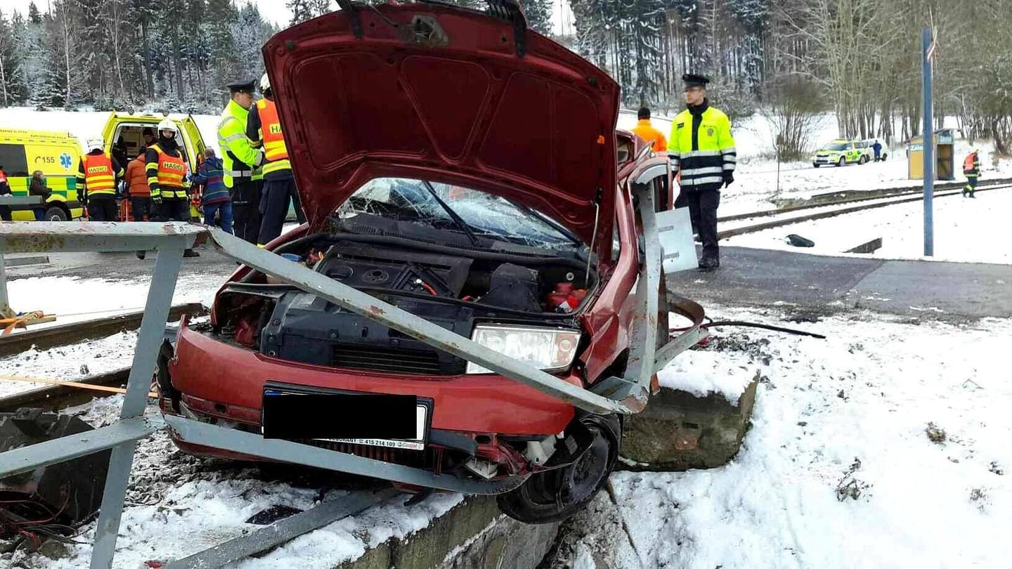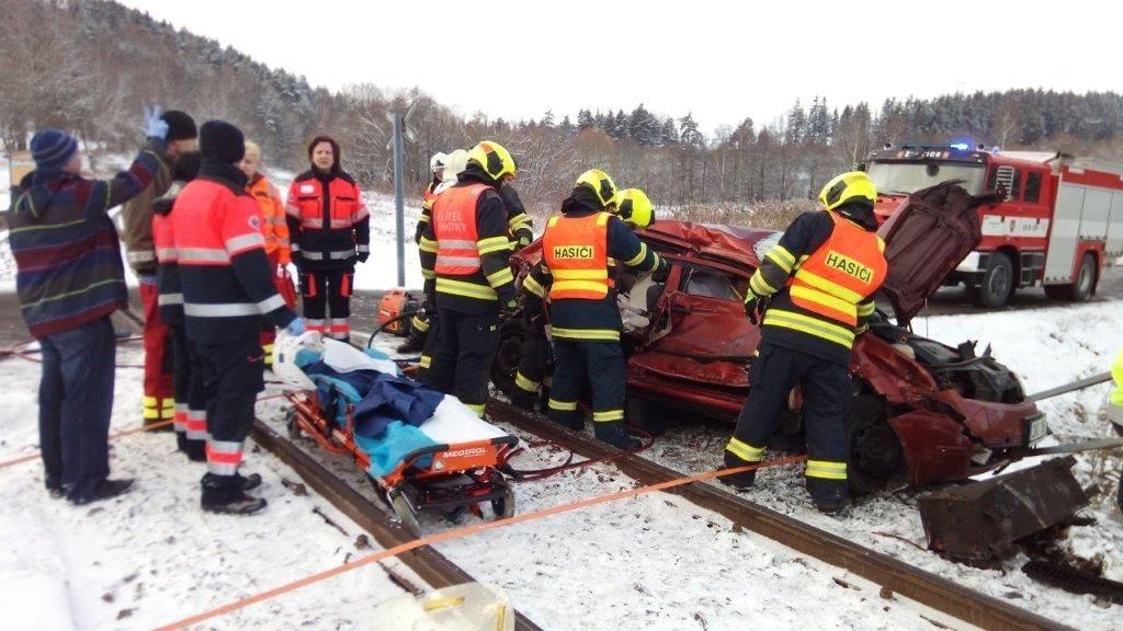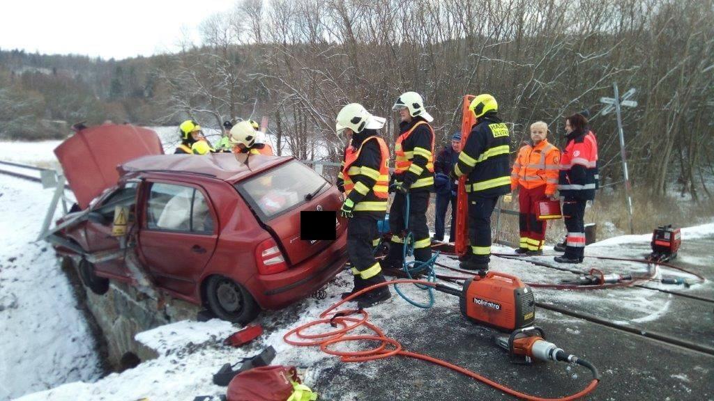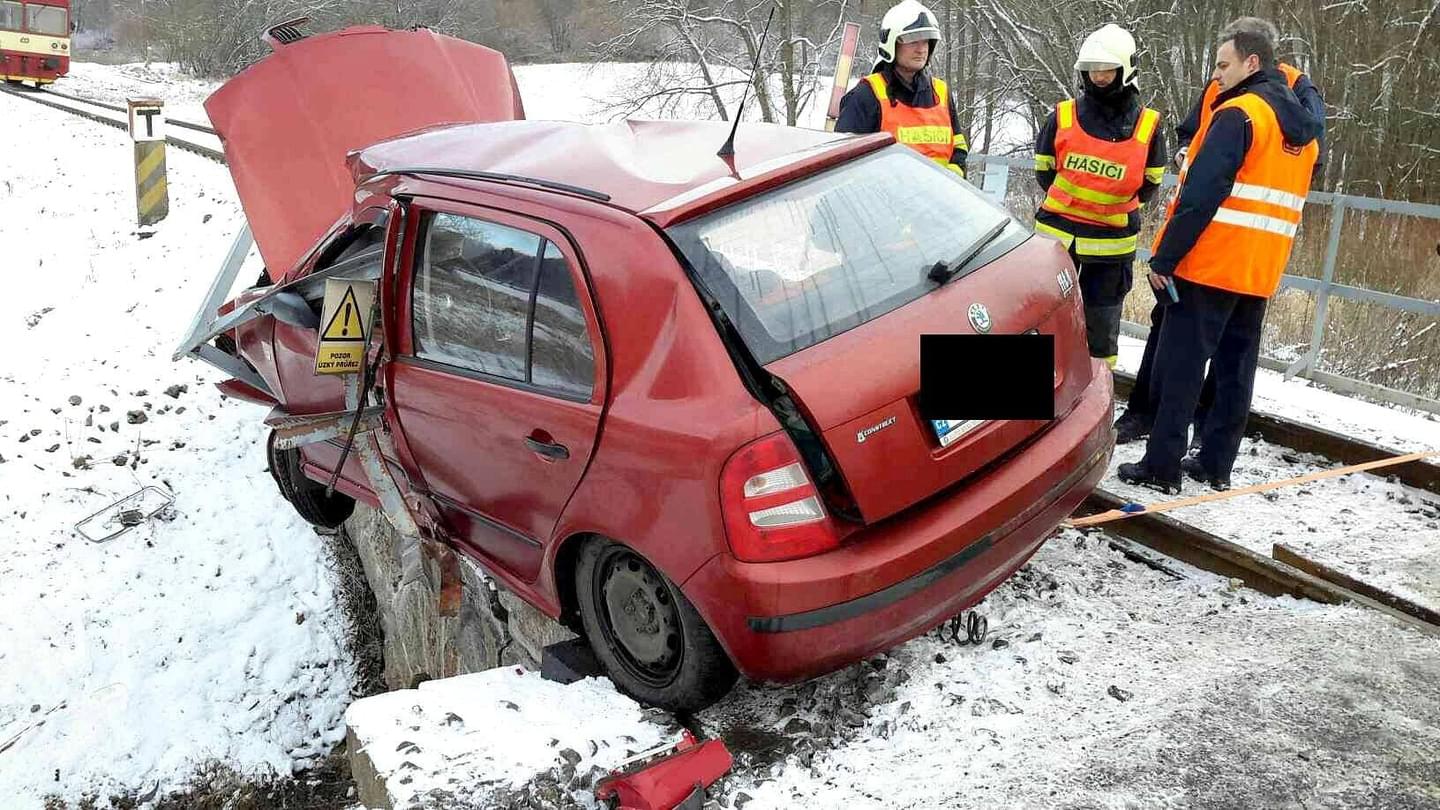 Škoda Fábia řízená mužem vjela na železniční přejezd ve chvíli, kdy místem projížděl osobní vlak, naštěstí bez cestujících. Po nárazu zůstalo zdemolované auto zůstalo viset na železničním mostku za přejezdem, uvnitř pak byly zaklíněné tři osoby.