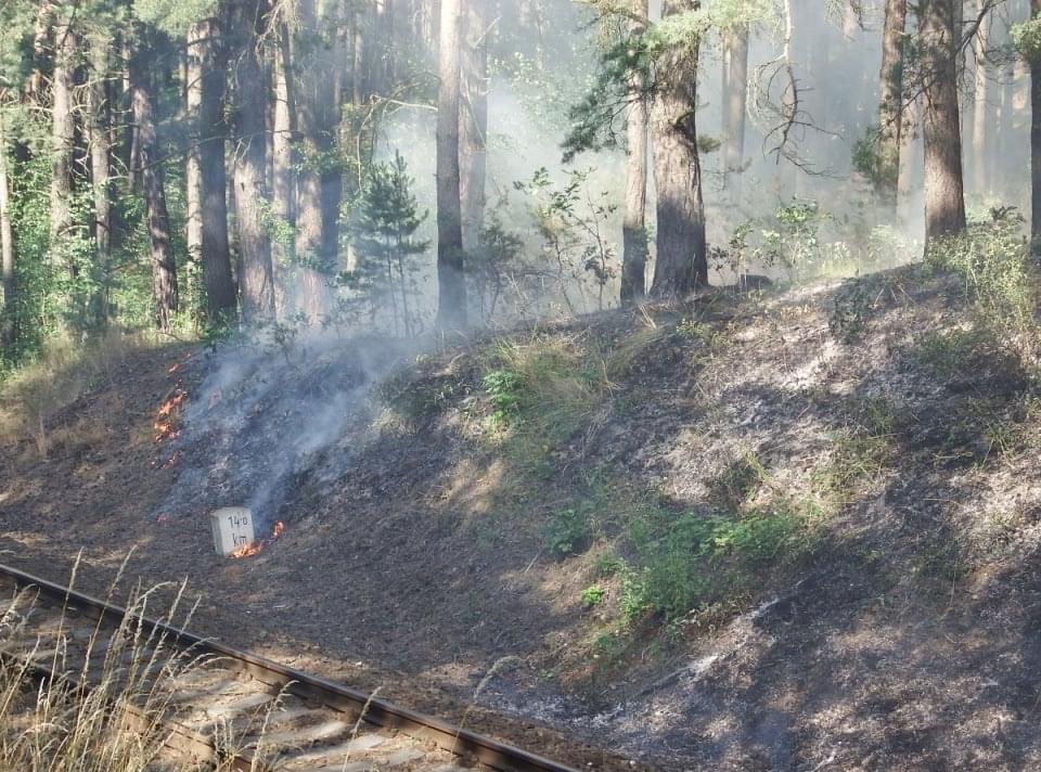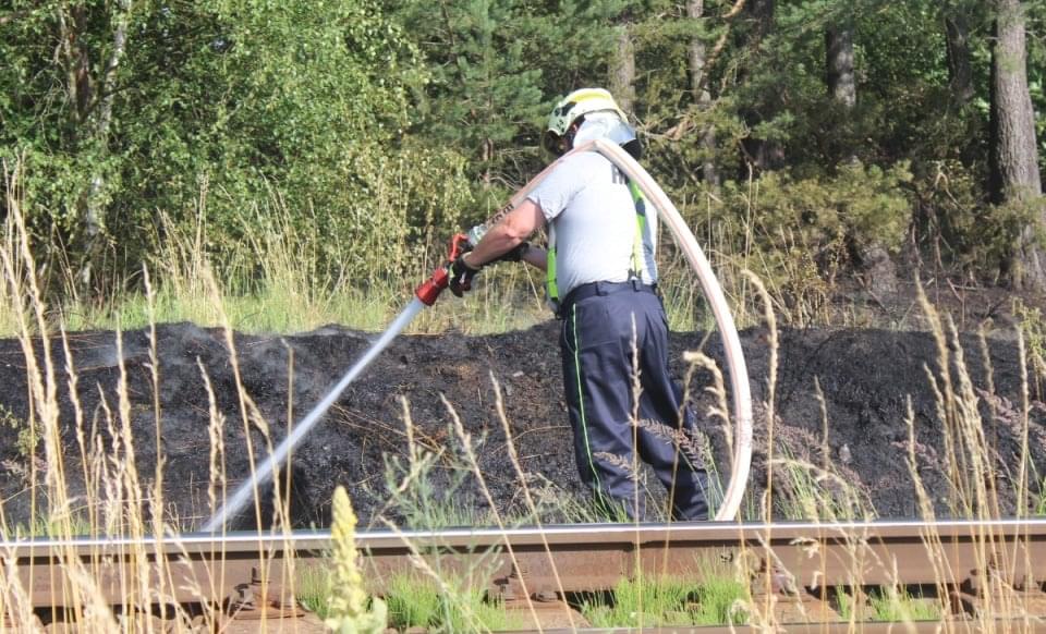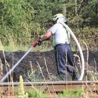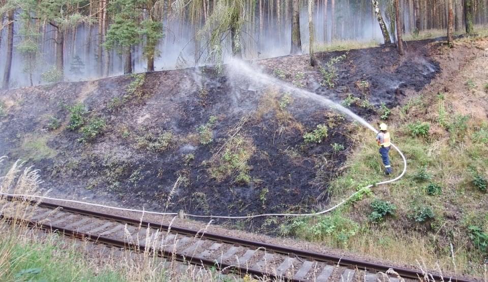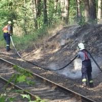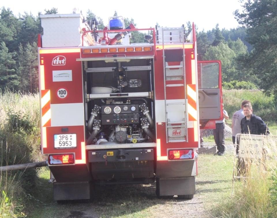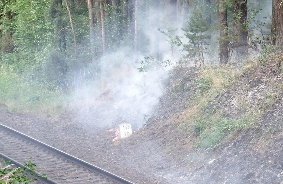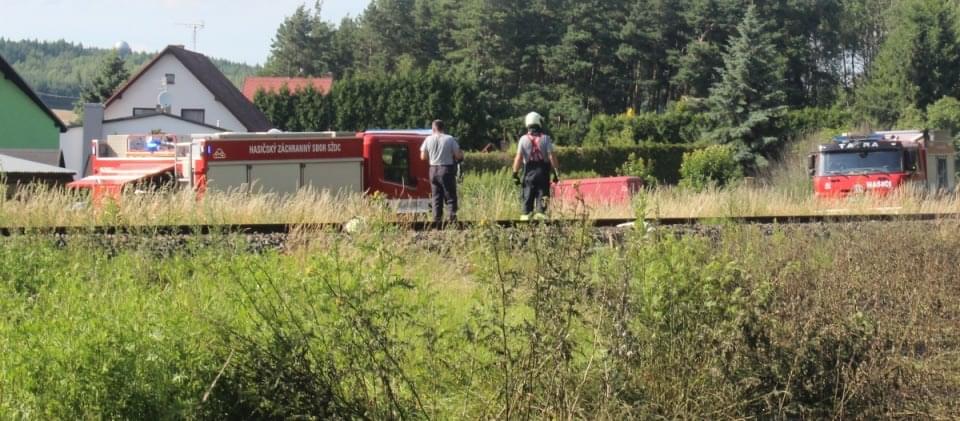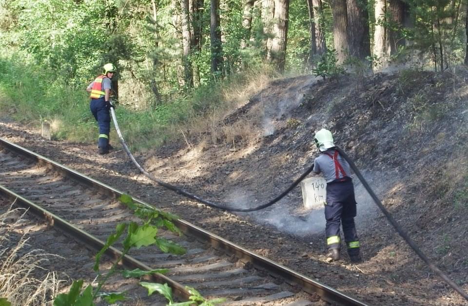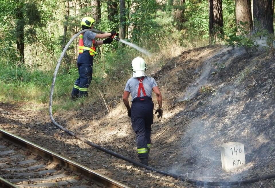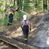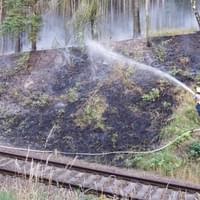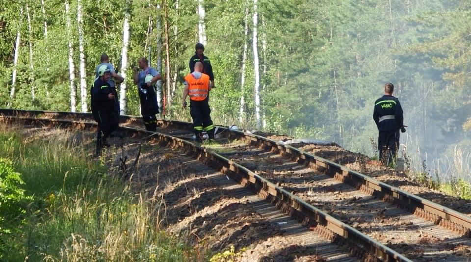 Rozsáhlý požár podél trati mezi Horní Břízou a Třemošnou likvidovali hasiči dnes celé odpoledne. Místní nám uvedli, že krátce před začátkem požáru tudy projela parní lokomotiva a oheň měly zažehnout jiskry, létající od lokomotivy.