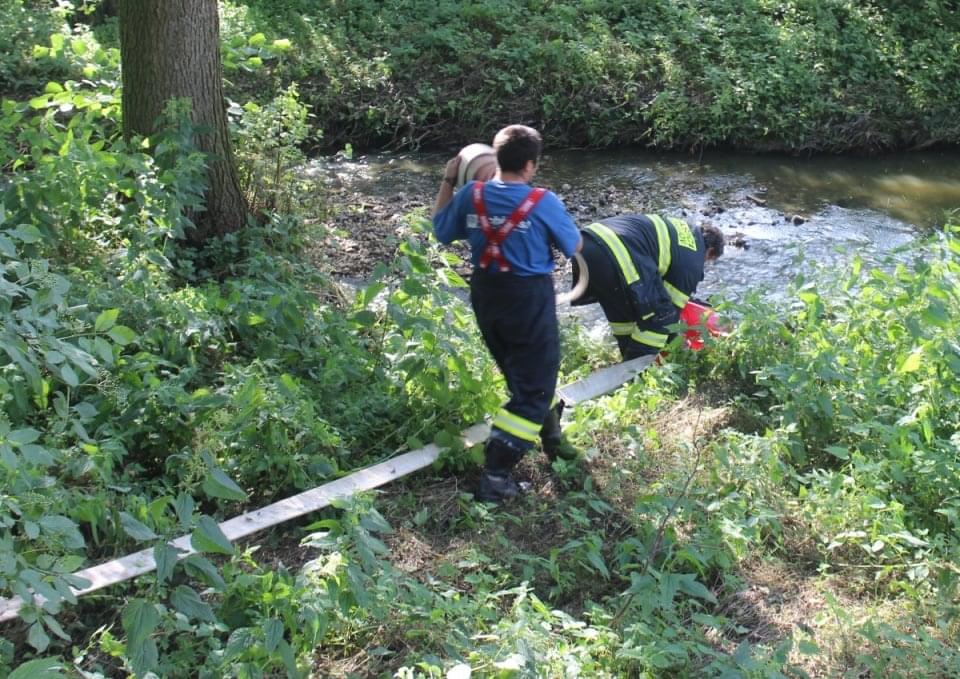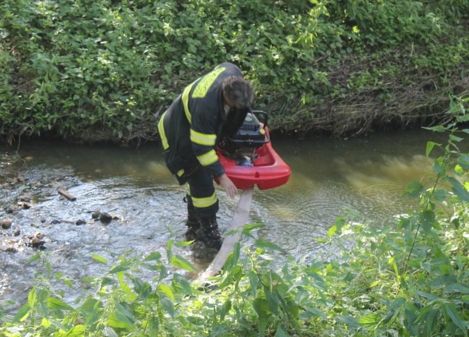 Nakonec museli policisté uzavřít silnice od Záluží na Horní Břízu, protože začala docházet voda a hasiči museli u zdejšího potoka založit čerpací stanici.