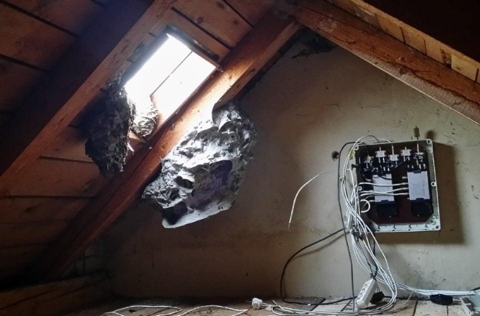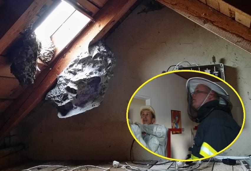 Soustavu vosích hnízd nalezli na půdě „Domu na půli cesty“ v Meclově. Hnízda byla tři, přičemž jedno bylovelkévíce než půl metru.