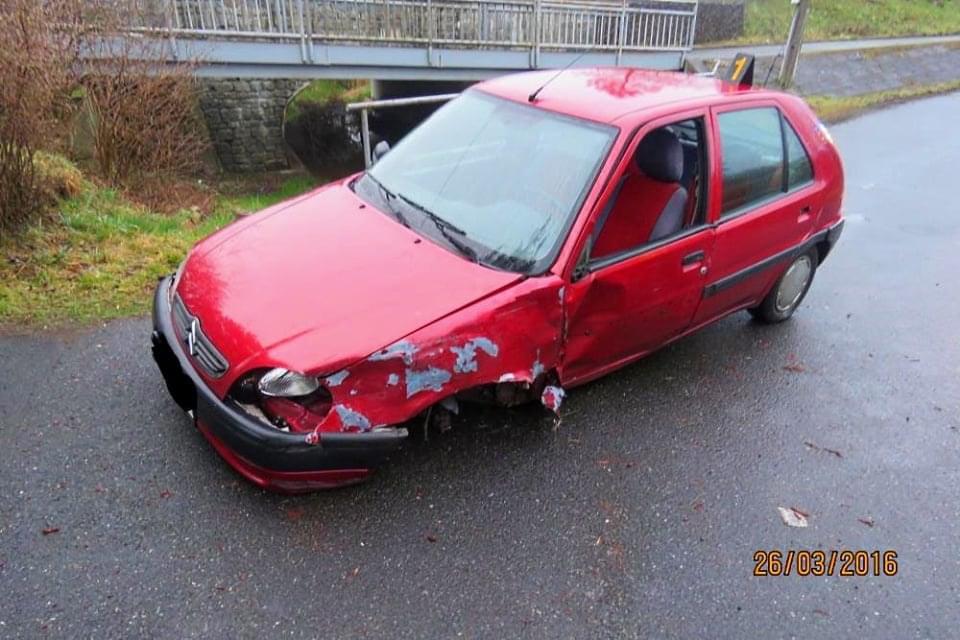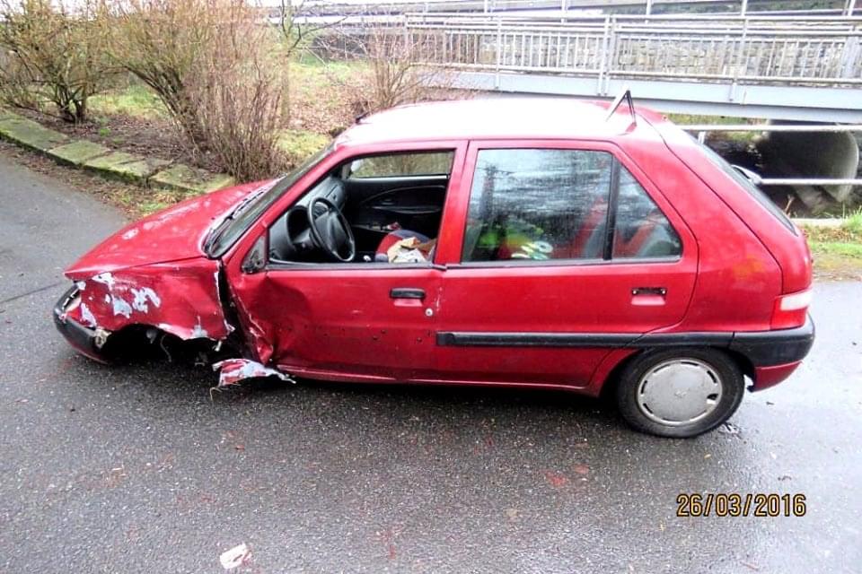 Řidič vozidla Citroen vylezl z vraku svého vozu a chtěl z místa dopravní nehody odejít, vtom mu samozřejmě ostatní účastníci nehody zabránili.