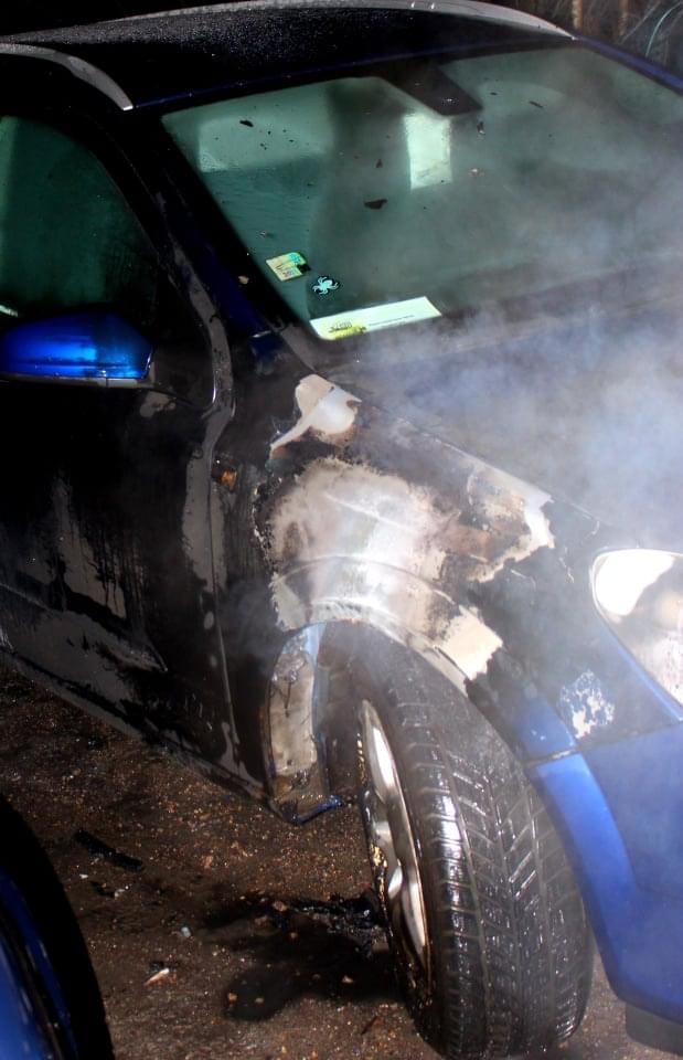 Bohužel z toho, že hořela pneumatika a blatník zvenku a ve vzduchu byla cítit vůně benzínu, je pravděpodobnější úmyslné zapálení.