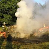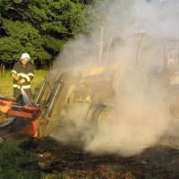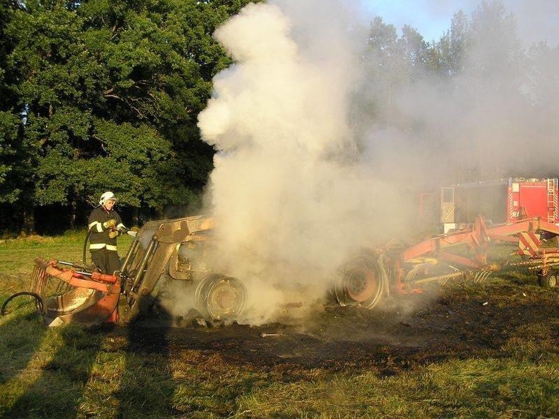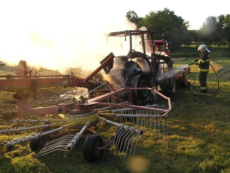 Požár poškodil celý traktor. Zapřaženou obracečku i travnatý porost se podařilo hasičům před ohněm ochránit. Škody se odhadují předběžně na půl milionu korun.