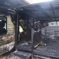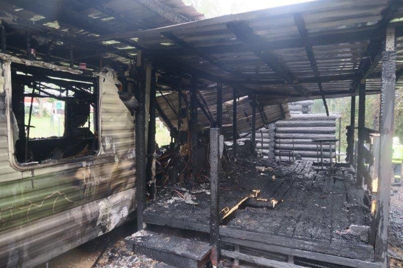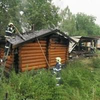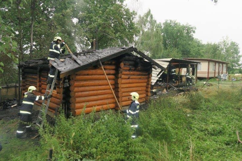 Na Radosti u Hracholusek zničil oheň roubený srub a mobilní dům