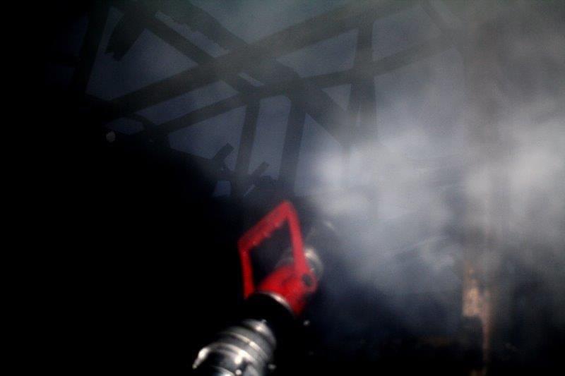Po sedmé hodině ráno se na požářišti vystřídaly směny a hasiči začali z budovy odčerpávat hasební vodu.