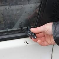 2/ rozbíječ přiložte na sklo a tlačte na něj, dokud skrytý hrot nárazem neroztříští sklo vozu. Hrot vystřelí a ihned se automaticky vrátí do počáteční polohy. Následně může být opakovaně (neprodleně) použit