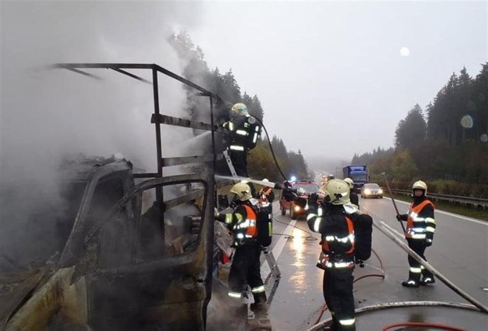 „Vybuchla nádrž, je tam vidět i díra, pak explodovala pneumatika a první zastavil, až když z auta byla ohnivá fagule. Hasiči přijeli asi za deset minut, byl jsem překvapený jak rychle, ale auto už zachránit nedokázali. Kamion byl firemní, takže uvidím, jestli jsem nepřišel o práci,“ vyprávěl ještě starší muž.