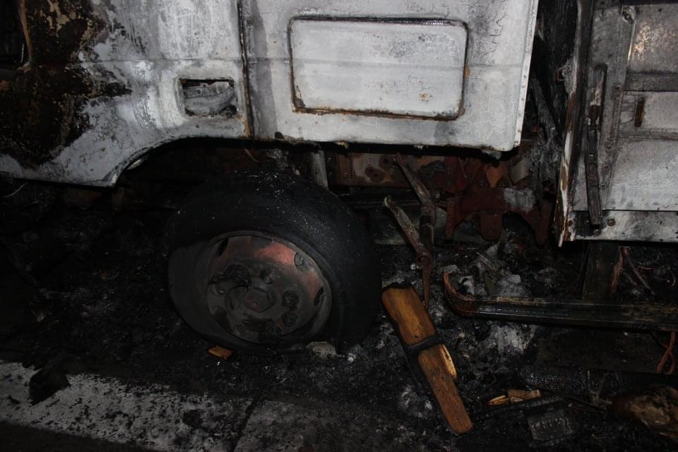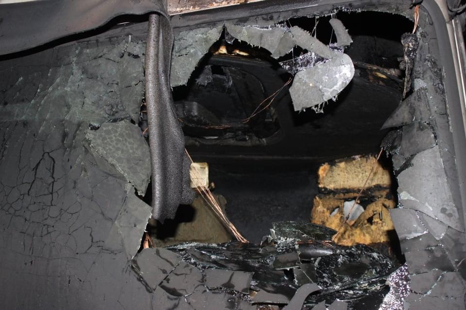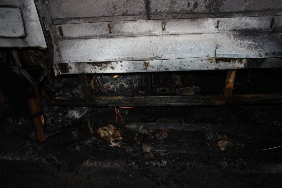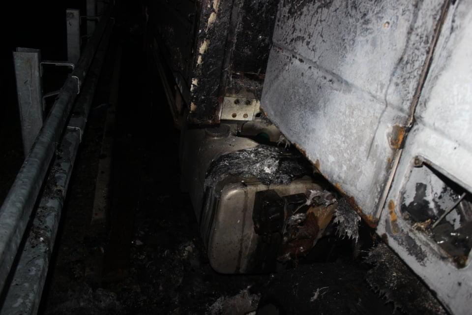 Doplnění odborníka:Na místě k žádnému výbuchu nádrže samozřejmě nedošlo. Díra v nádrži byla vytvořena degradací hliníkové slitiny sálavým teplem. K fyzikálnímu výbuchu došlo pouze u obou předních pneumatik a to je relativně neškodná záležitost, pouze akusticky nepříjemná. Toto řidič za výbuch nádrže asi považoval.