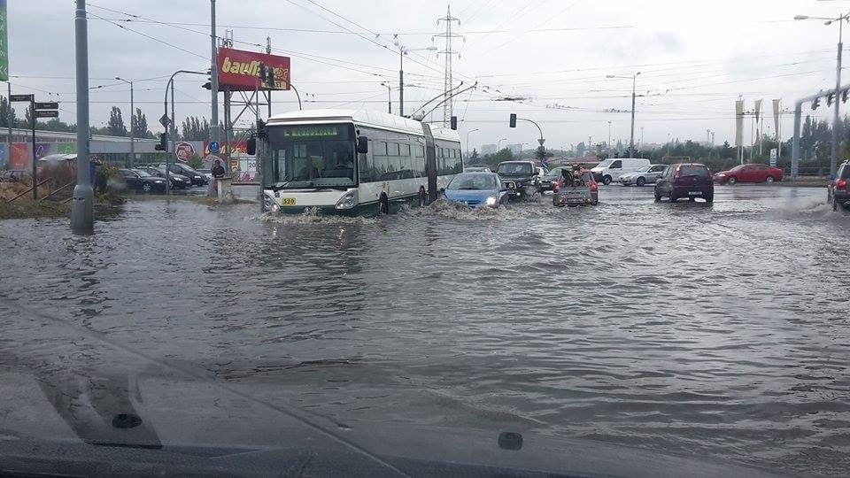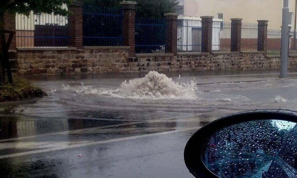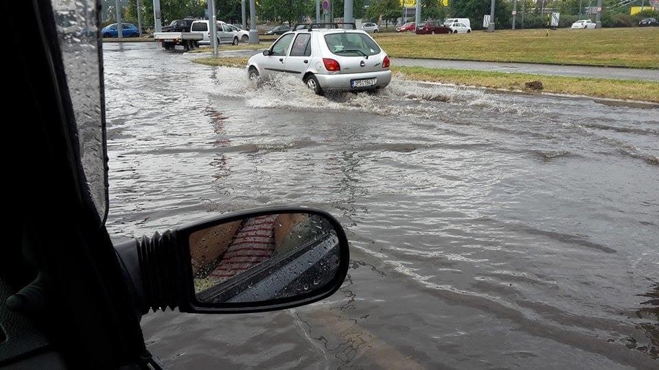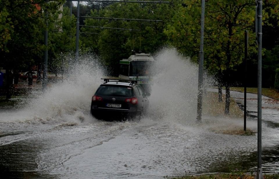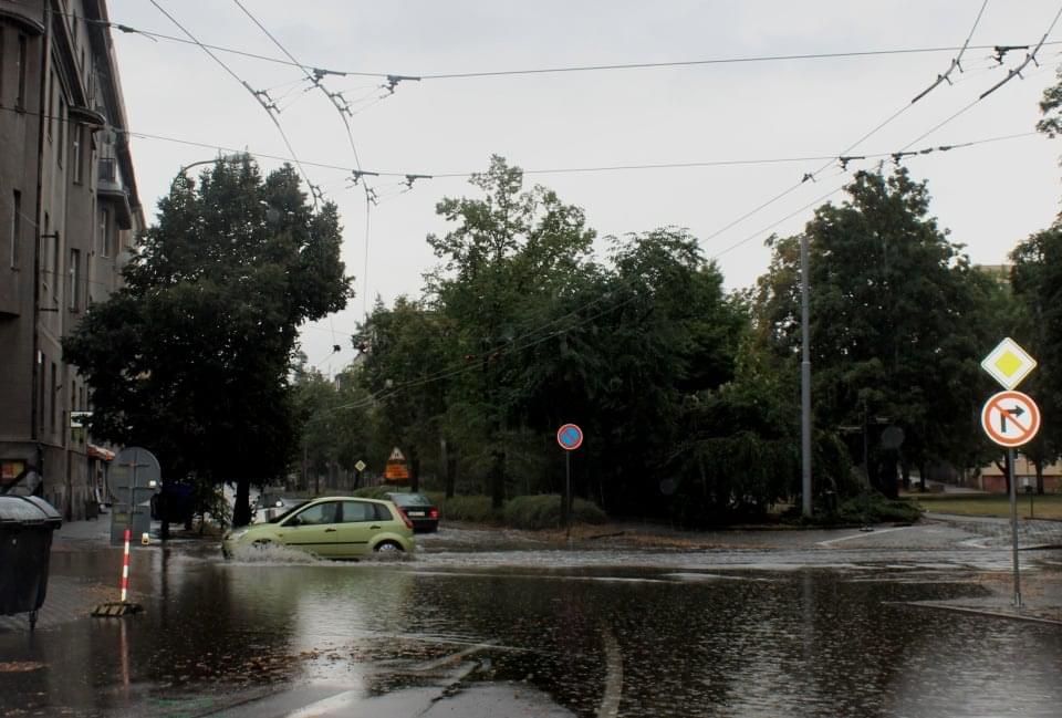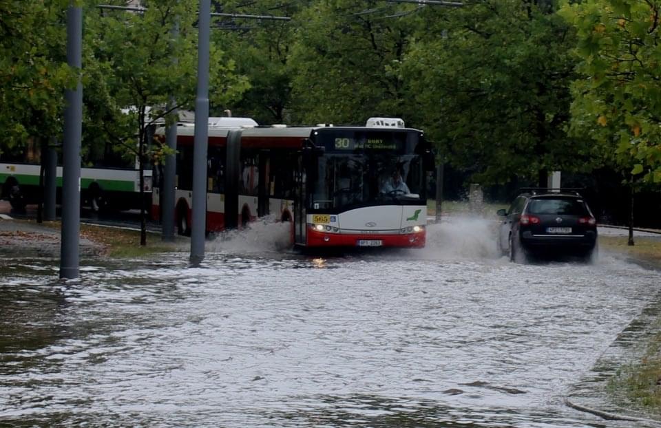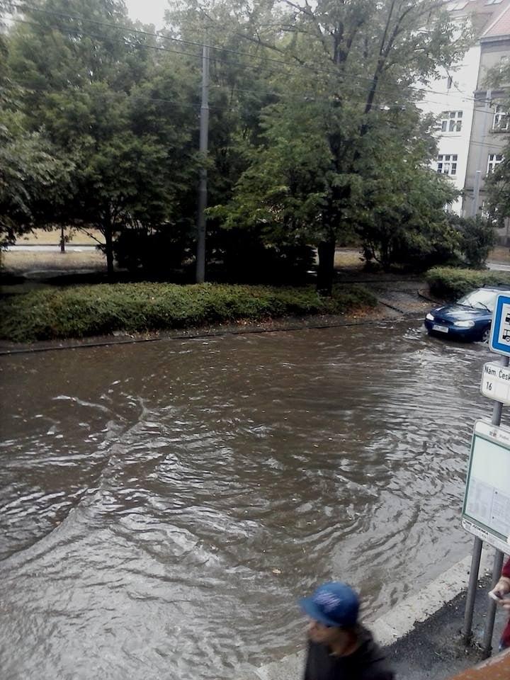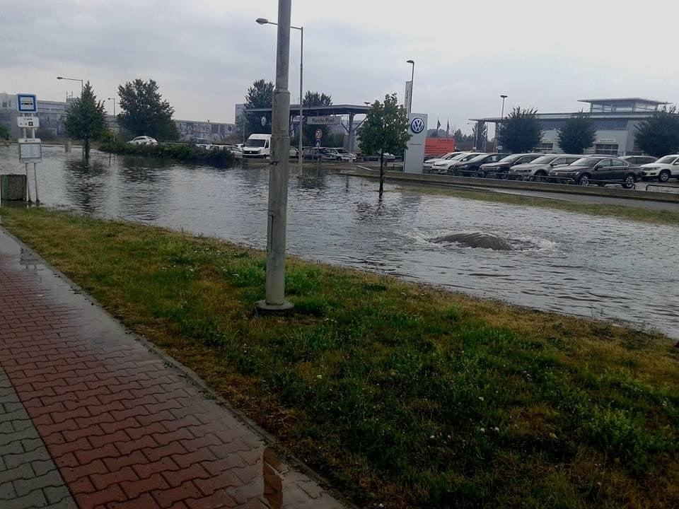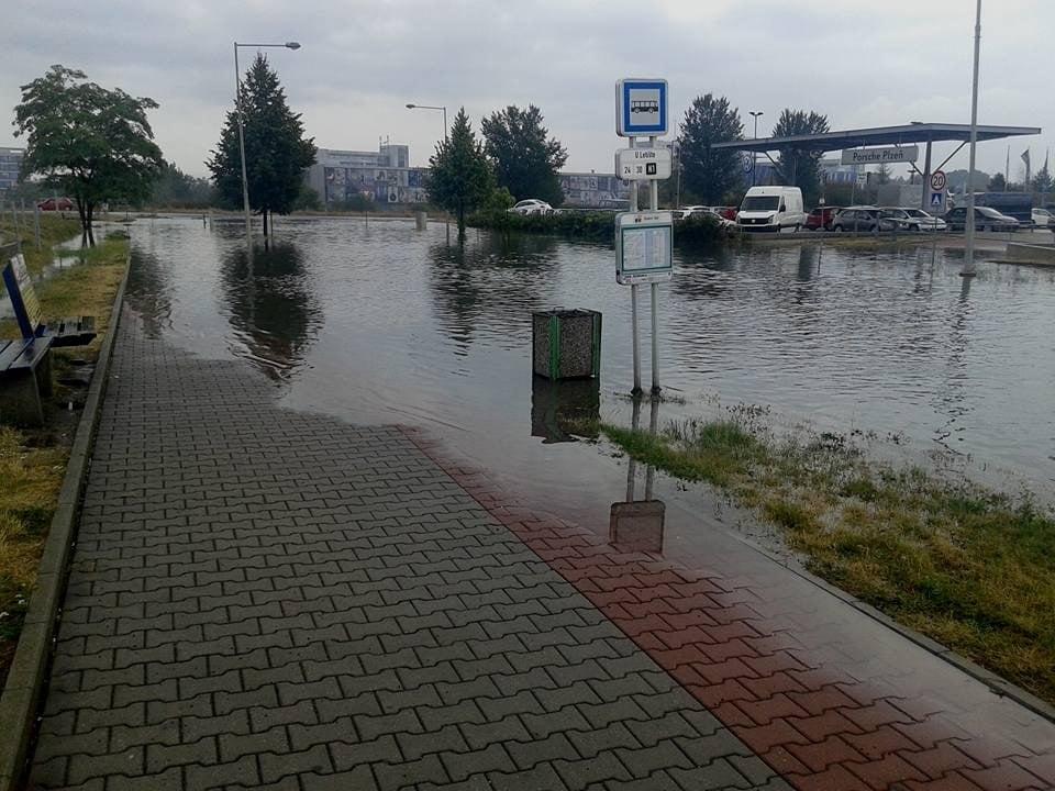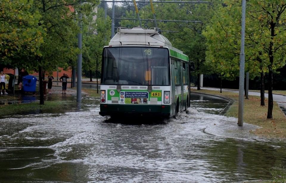 Plzní se dnes odpoledne prohnala malá, ale vydatná průtrž mračen. V některých čtvrtích o dešti skoro ani nevěděli, někde již teď vynášejí vodu ze sklepa v kbelících. Hasiči, kteří si ještě ani neodpočinuli po sérii lesních a polních požárů, nyní vyrážejí čerpat vodu na desítky míst. Viděli jsme je na Božkově, v Lobzích,v Guldenerověi na Klatovské třídě a dalších místech. Na Doubravce byl páskou uzavřen podchod Stavební stroje - Rokycanská a hasiči čerpali vodu.
