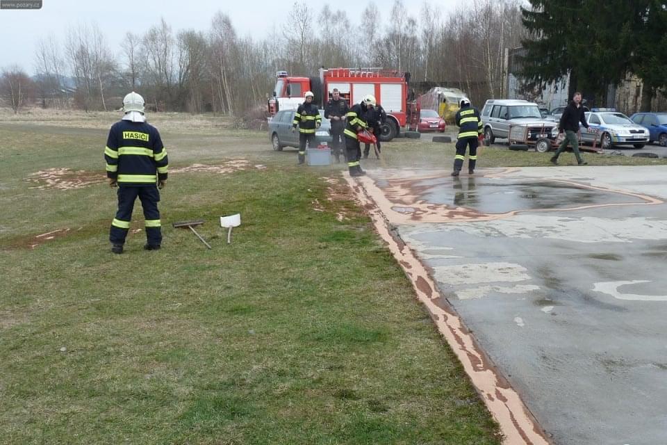 Hasiči na likvidaci zbývajícího benzínu použili 130 kg sorbentu a z příjezdové cesty odstranili prorůstací tvarovky, aby mohlo být provedeno odbagrování kontaminované zeminy.