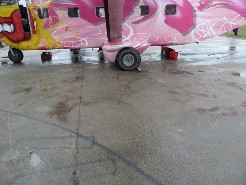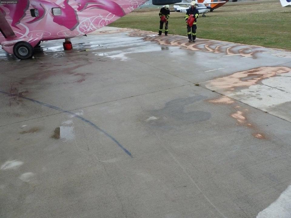 Na letišti Chaloupky došlo včera, těsně po čtvrté odpoledne, při přistávání letadla, k poruše motoru. Součástky, které z poškozeného motoru odlétly, prorazily nádrž. Na betonovou plochu o velikosti cca 20×20 metrů před hangárem, z části na zatravněnou plochu a na zpevněnou příjezdovou cestu, uniklo zhruba 100 litrů paliva.