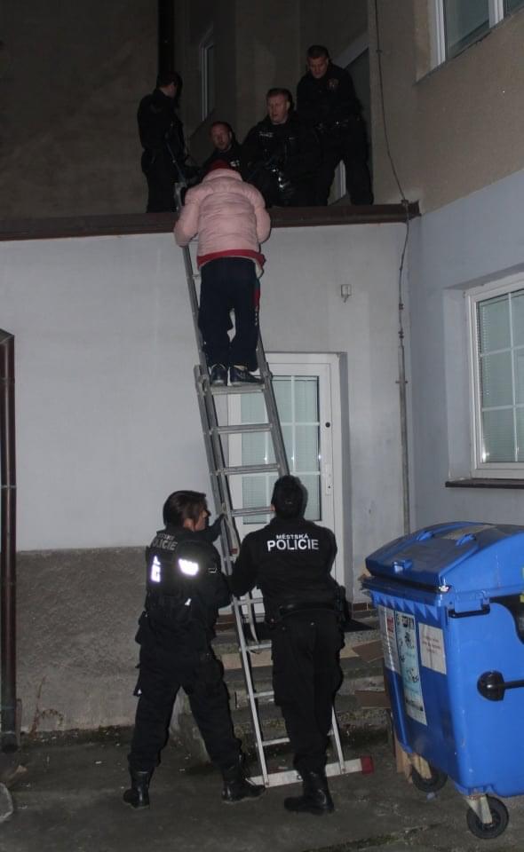 Již jsme párkrát informovali o speciální lezecké jednotce Městské policie Plzeň a tak strážníci vyzkoušeli naostro co umí. Vylezli do druhého patra, bezdomovce navázali na lano a bezpečně jištěného ho nechali slézt po žebříku na stříšku přístavku v prvním patře, zde postup zopakovali a dostali tak muže naprosto bezpečně na pevnou zem.