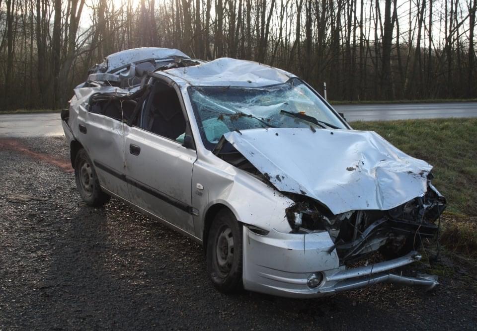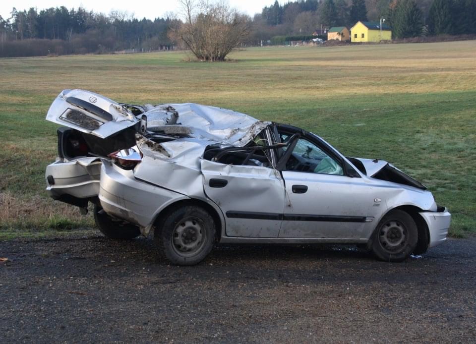 Auto s rodičkou a s malým chlapcem skončilo na střeše