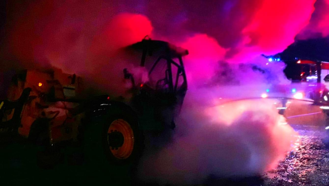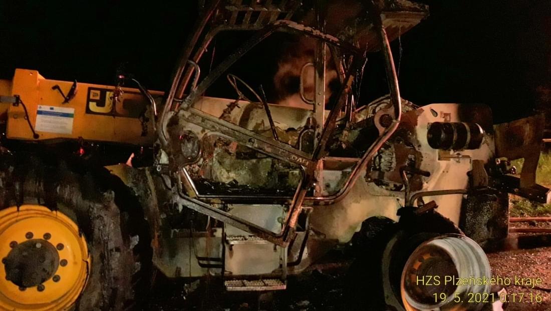 V noci na dnešek před půlnocí vyjíždělo několik jednotek hasičů do Lhotky u Radnic, kde v zemědělské společnosti došlo k požáru jednoho ze strojů.