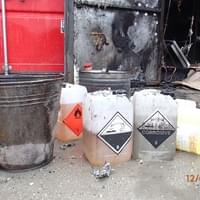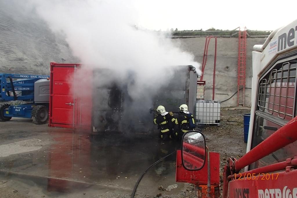 Po likvidaci požáru kontejner otevřeli a překontrolovali nádoby s chemikáliemi. Žádná nebyla při požáru poškozena.
