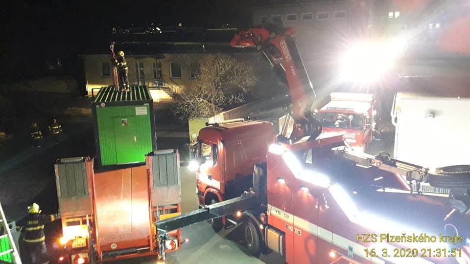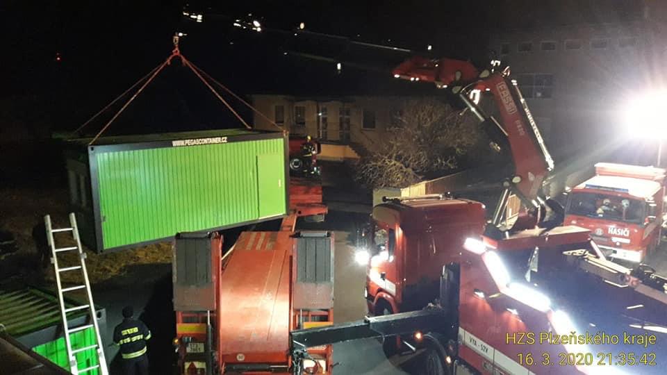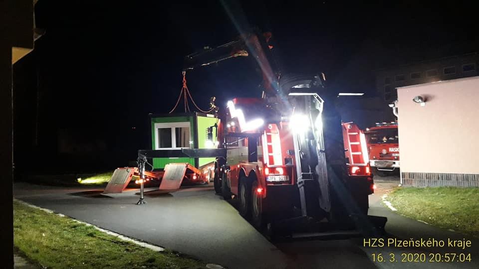 V noci na dnešek hasiči do areálu nemocnic v Klatovech a Rokycanech přivezli mobilní buňky, které budou sloužit jako součást testovacích stanovišť pro testování onemocnění Covid-19 a další místa se momentálně připravují. Cílem zřízení těchto stanovišť je nejen zvýšit kapacitu pro testování, ale také omezit vstup potenciálně nakažených do nemocnic. Dnes se ještě budou připravovat ještě stany.