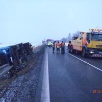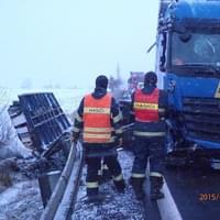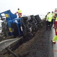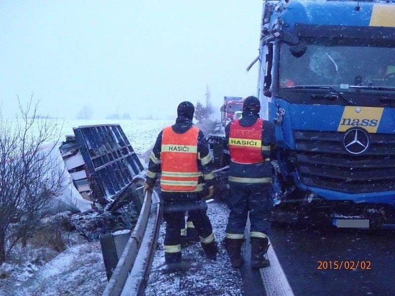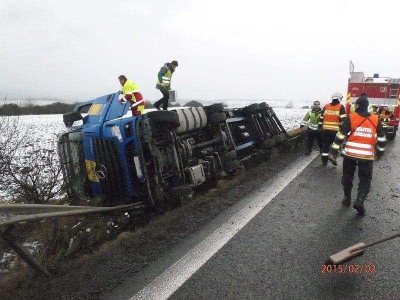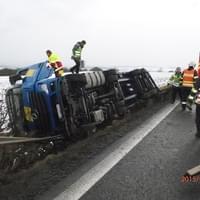 První velkou nehodou byla dopravní nehoda kamionu u 64. km dálnice D5, ve směru na Prahu, kam vyslalo operační středisko hasiče z Rokycan a ze Slovan. Hasiči zraněnému řidiči zafixovali horní končetinu do dlahy a předali ho ZZS. Uniklé provozní kapaliny zasypali sorbentem. Dálnice zůstala po celou dobu průjezdná jedním jízdním pruhem. Po dohodě s PČR se jednotky vrátily na základny. Vyproštění kamionu zajistila odtahová služba.