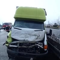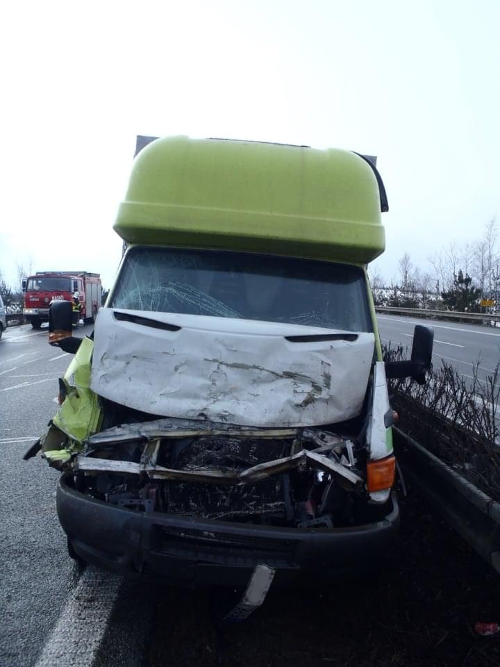 Další nehodu hlásili sami účastníci v půl dvanácté. Hasiči z Rokycan vyráželi na 44. km dálnice D5 ve směru na Prahu, kde likvidovali následky dopravní nehody dodávky a kamionu.