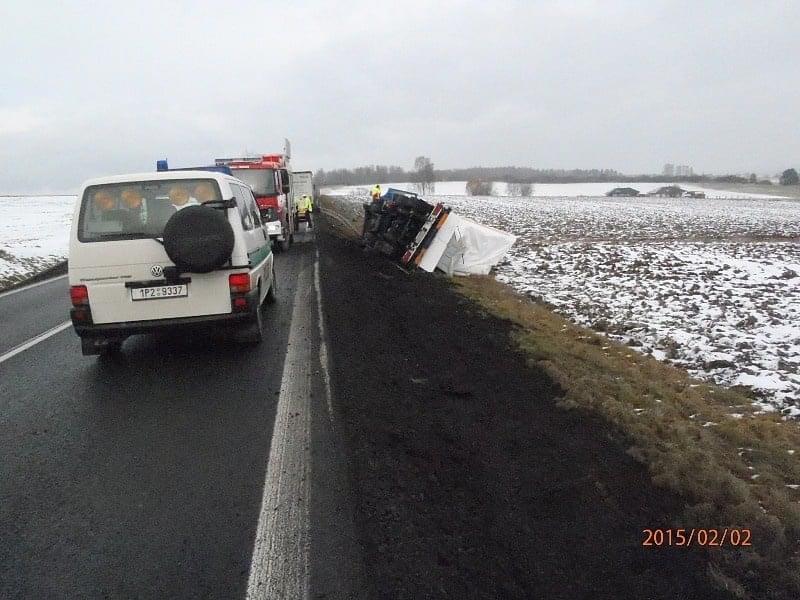 Nejvážnější nehoda byla u Chválenic. Zde se dopoledne, zhruba 300 metrů od Chválenic ve směru na Plzeň, utrhla krajnice pod NA a ten se převrátil do pole. V 11:25 minut k nehodě vyjeli hasiči. Řidič vyvázl bez zranění, z kabiny se dostal sám před příjezdem jednotky. Hasiči zajistili místo nehody a vozidlo opatřili proti požáru. Hasiči asistovali PČR při vyšetřování nehody a pomáhali odtahové službě kamion vyprostit. Po dobu zásahu byl provoz na silnici I/20 zcela zastaven, uzavírka trvala přes tři hodiny. Po odjezdu odtahové služby hasiči z vozovky odstranili nánosy bahna a štěrku. Provozní kapaliny neunikly.