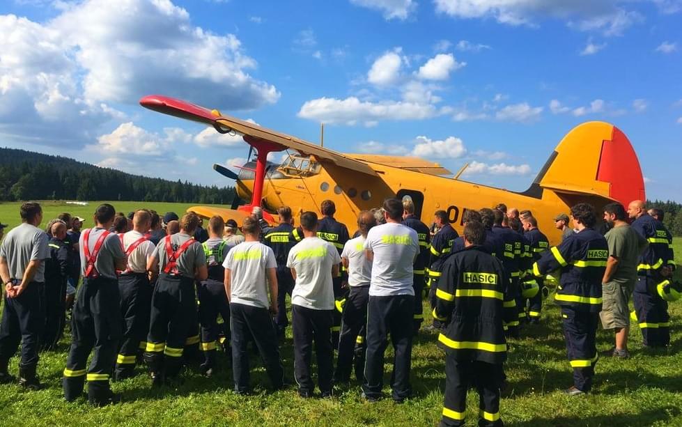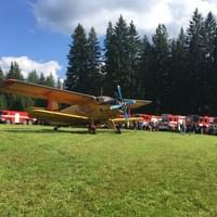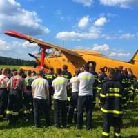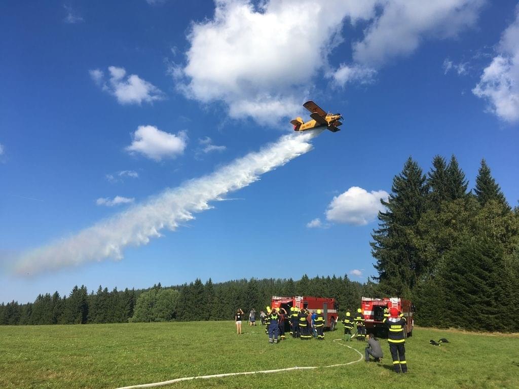 Dnes odpoledne od 14:30 do 17:30 hodin proběhl na polním letišti u Prášil a v okolí součinnostní výcvik složek IZS, při kterém si hasiči vyzkoušeli plnění vodní nádrže letounu An-2 „Andula“ letecké hasičské služby Vladimír Pavlata BETA-AIR za pomocí požární techniky.
