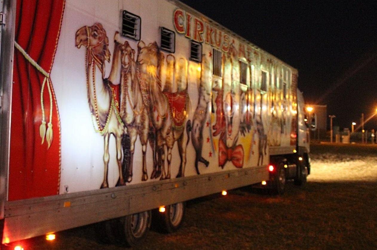 Zapadl zde kamion cirkusu Metropol, převážející mimo jiných zvířat i tygry. Kolos uvízl na louce, kam právě tento večer zaměstnanci cirkusu přivážejí vozy a vybavení pro stavbu šapitó.