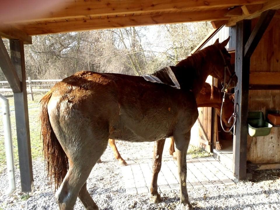 Dnes dopoledne nedaleko obce Únehle utekl zohrady kůň a následně uvázl v bažině vrozbahněném korytě potoka, kde byl uvězněn až po břicho.