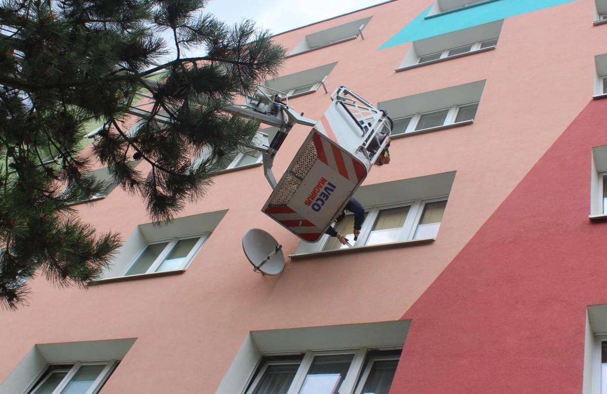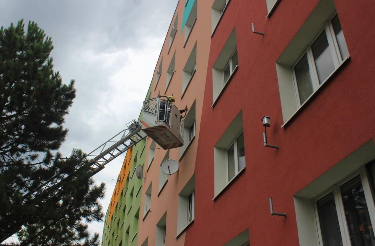 Hasiči zvolili cestu oknem za pomoci výškové techniky, ale všechny pokusy o otevření okna bez poškození selhaly. Hasiči tak museli rozbít okno a do bytu vstoupit tudy.