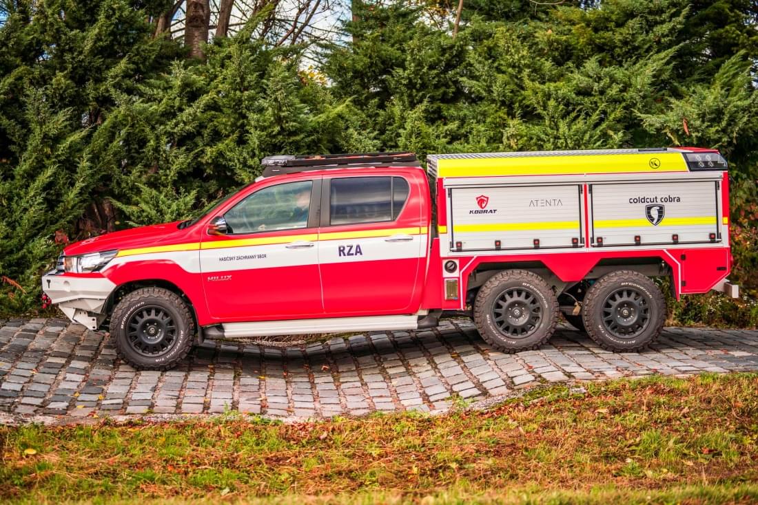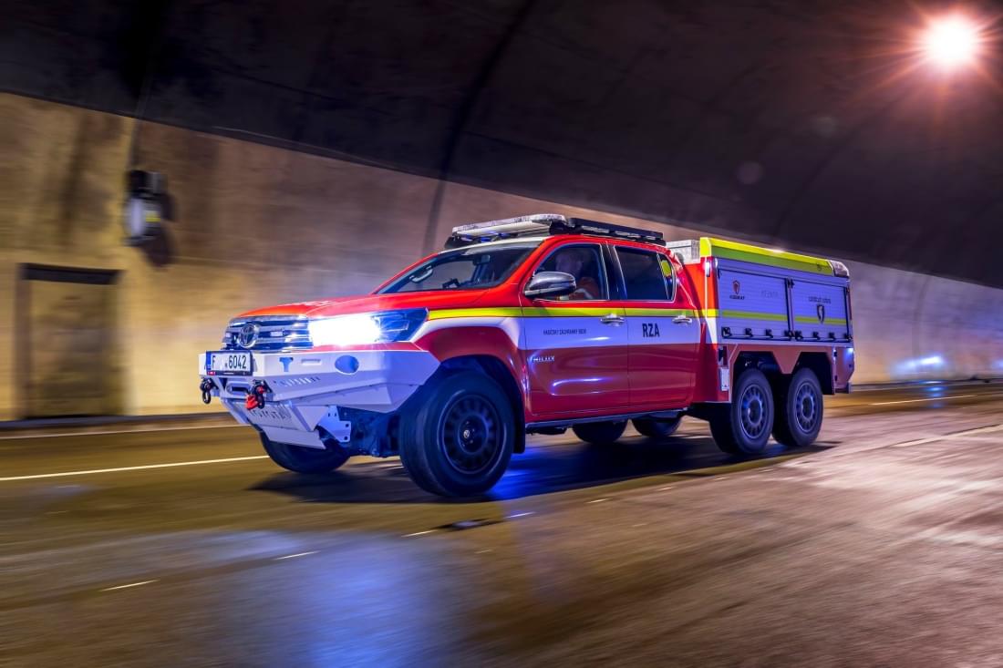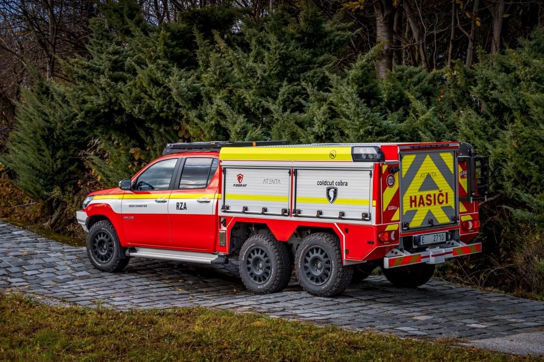 Vozidlo je postaveno na platformě Toyota Hilux 6x6 a je vybavené vysokotlakým hasícím systémem CCS Cobra, umožňujícím rychlé a efektivní hašení trakčních akumulátorů. Vzhledem k vysoké účinnosti hasebního média a čerpadla je možné využití vozidla pro širokou škálu zásahů hasičských jednotek. Součástí výbavy je také akumulátorové vyprošťovací nářadí Holmatro, přetlaková ventilace, detekční technika a předepsaná výbava RZA. Posádka vozidla RZA má k dispozici také přenosný i stabilní termovizní monitorovací systém.