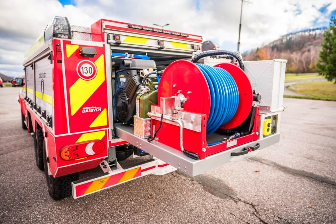 Pro tyto potřeby byl proto ve spolupráci s naším partnerem Autosalonem Dajbych vyvinut rychlý zásahový automobil (RZA), který je díky výšce pod 185 centimetrů schopen pohybu ve stísněných podmínkách garáží, ale zvládá i náročný nepřístupný terén i nepřístupném terénu a díky nevšednímu třínápravovému podvozku má i dostatečnou nosnost pro vše potřebné.