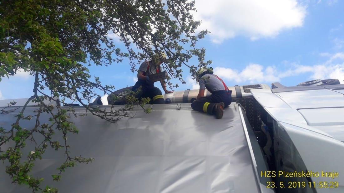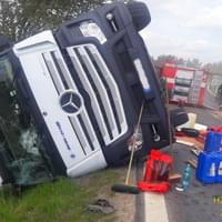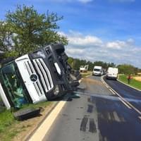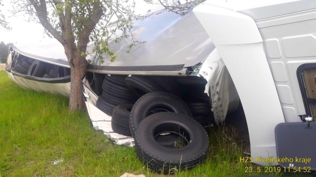 Dnes kolem jedenácté hodiny dopoledne došlo na silnici u Bezděkova. k havárii nákladního vozu převážejícího pneumatiky.