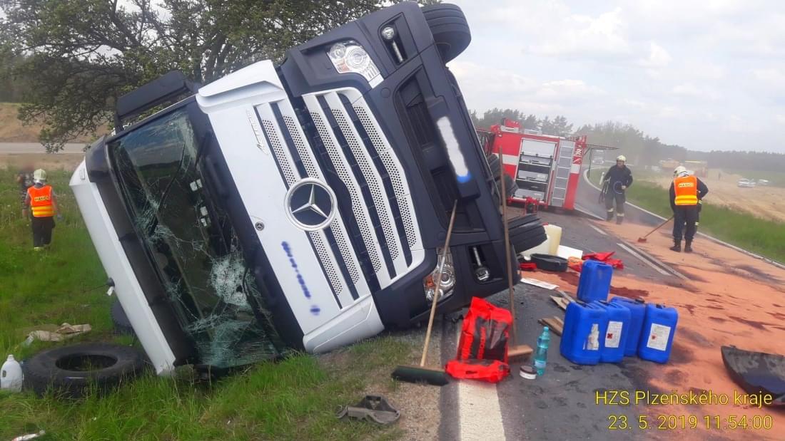 "S nákladní soupravou jel od Plané osmatřicetiletý cizinec. Z dosavadního šetření vyplývá, že nepřizpůsobil rychlost jízdy, v levotočivé zatáčce nezvládl řízení a s vozidlem najel na pravou krajnici, která se pod tíhou kamionu uvolnila. V důsledku toho nákladní souprava havarovala v pravém silničním příkopu, kde se převrátila na pravý bok," popsala tisková mluvčí policie.