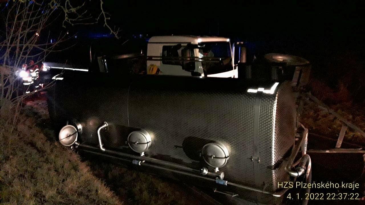 Na převrácené mlékárenské cisterně vznikla čtvrtmilionová škoda
