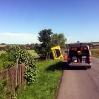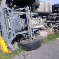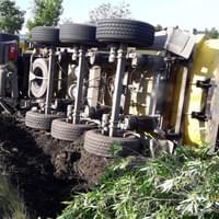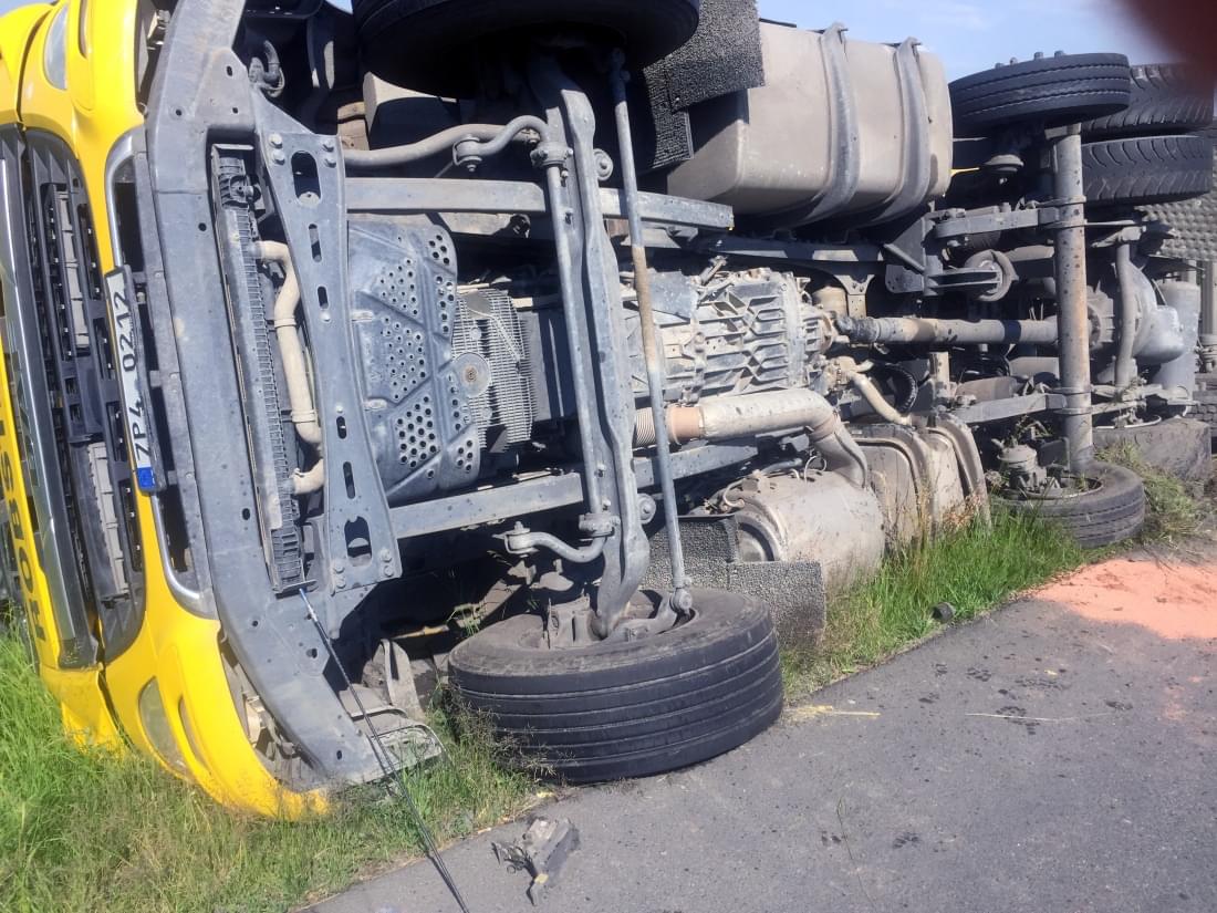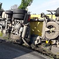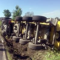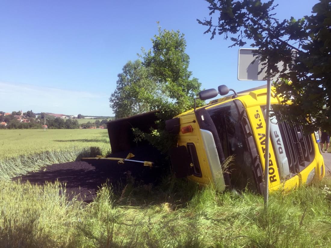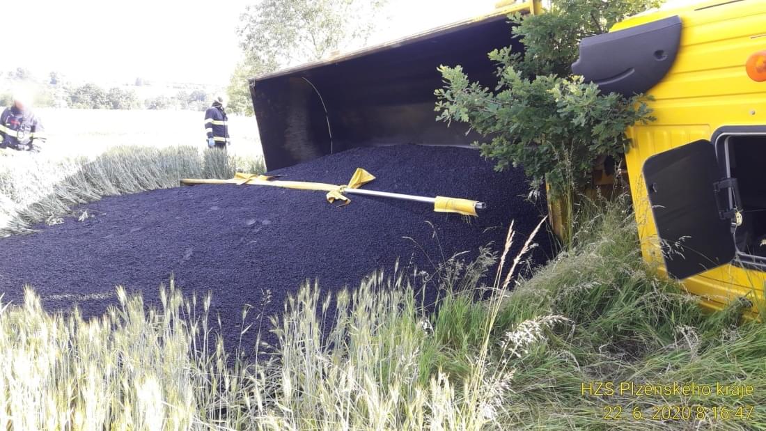 Dnes před osmou hodinou ráno došlo mezi Číčovem a Borovnem k havárii nákladního vozu DAF převážejícího asfaltovací směs do příkopu.