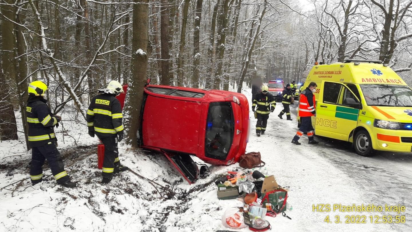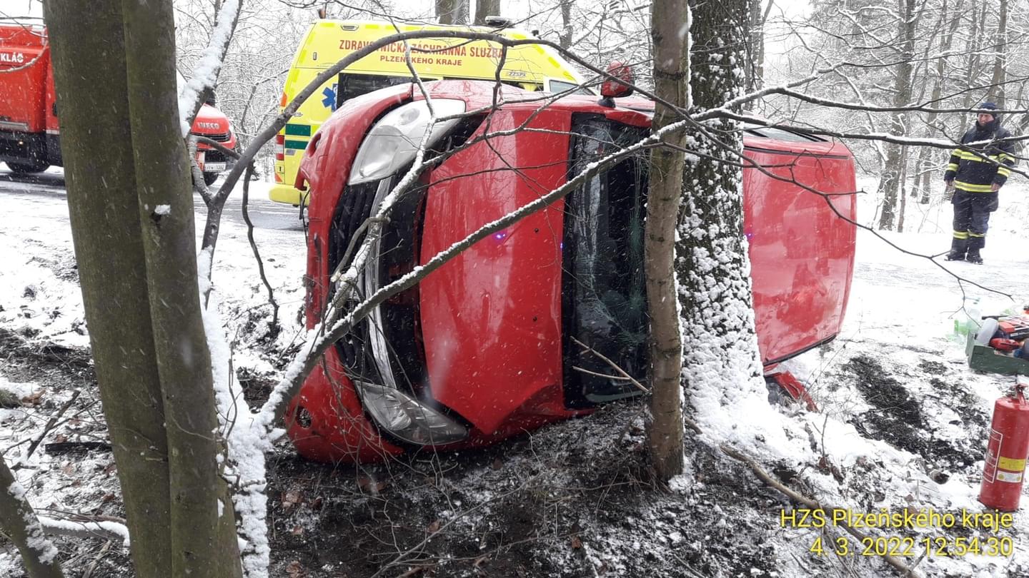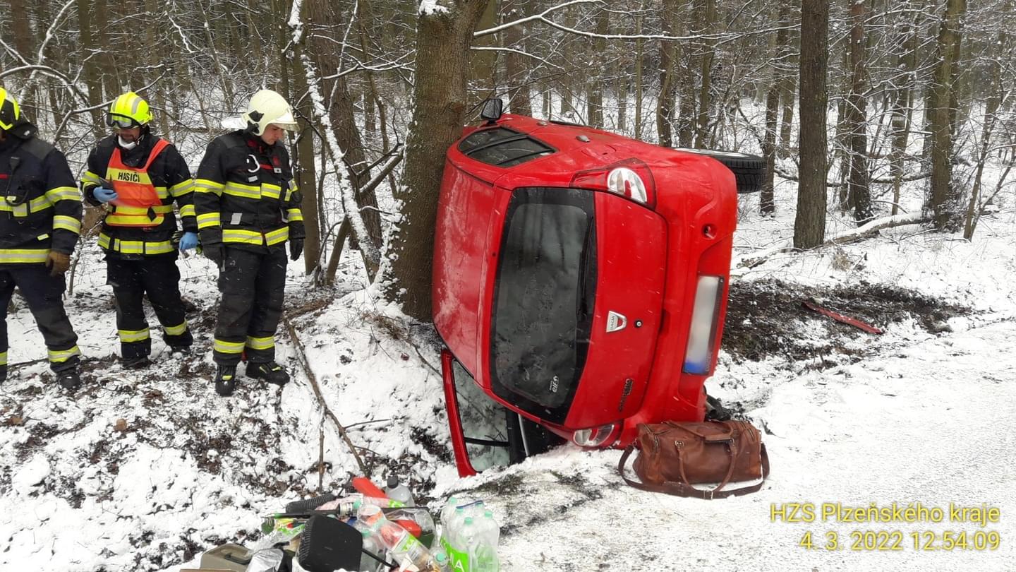 Ani ne o dvě hodiny dříve havarovala mimo silnici i řidička ve Stodu: