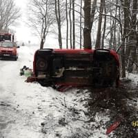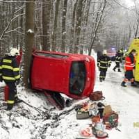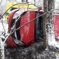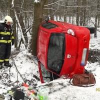 Dnes v půl jedné odpoledne došlo nedaleko Kařízku u Bechyňského rybníku k nehodě osobního vozu Dacia. Ten po vyjetí ze silnice narazil do stromu a převrátil se na bok.
