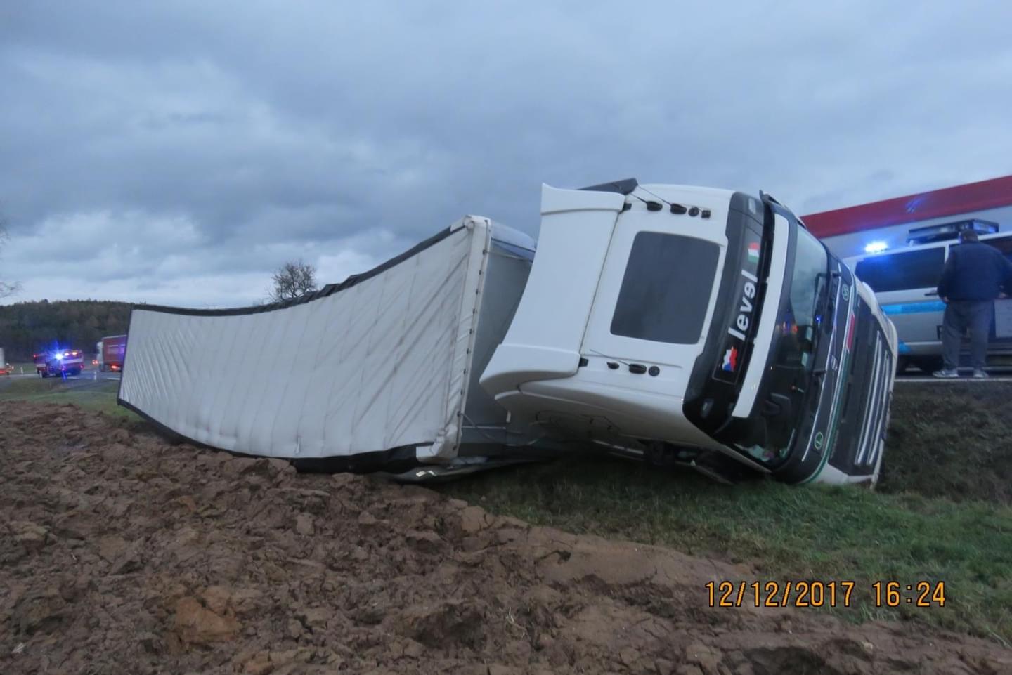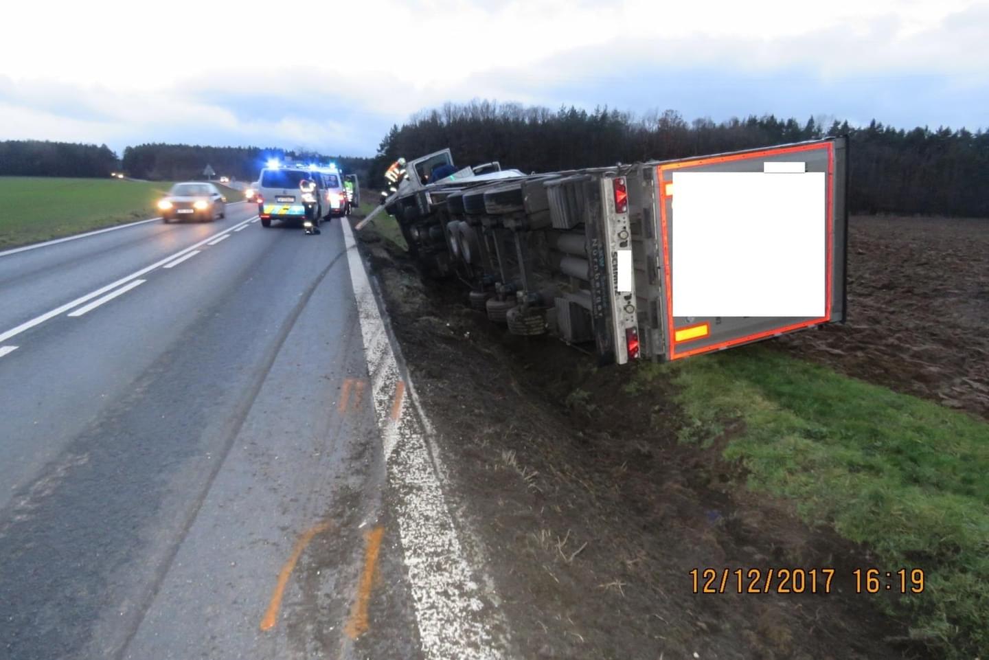 Hlavní tah na Domažlice uzavřela havárie kamionu
