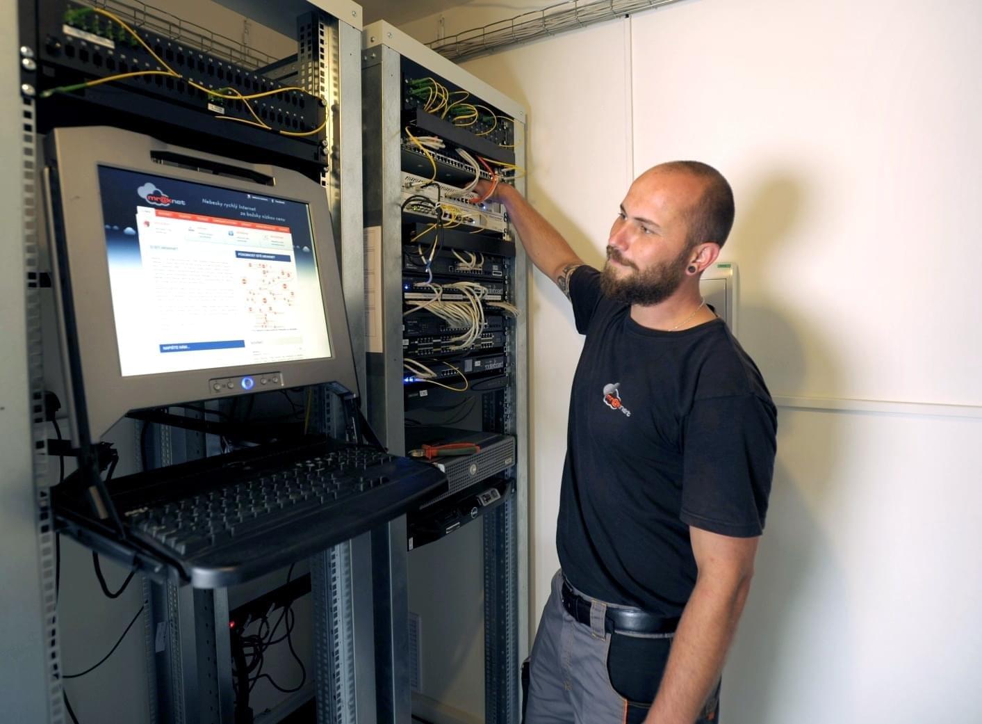 IT technik realizující internetové přípojky, servis internetových přípojek, servis výpočetní techniky, montáž a servis moderních vysokokapacitních spojů, výstavba a správa datových sítí i optických sítí.