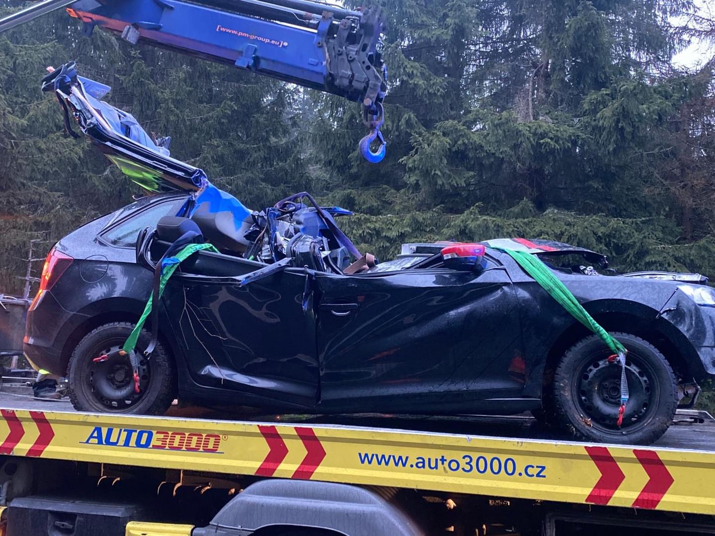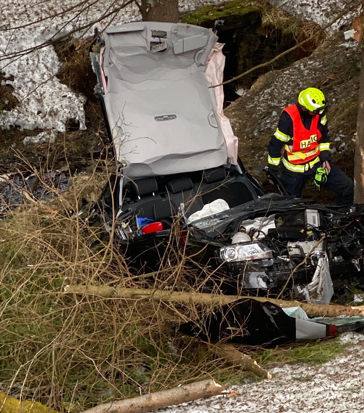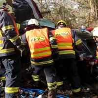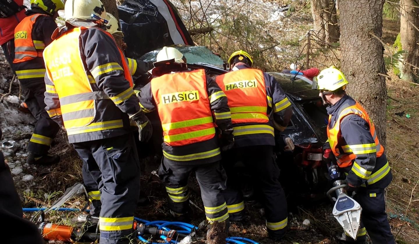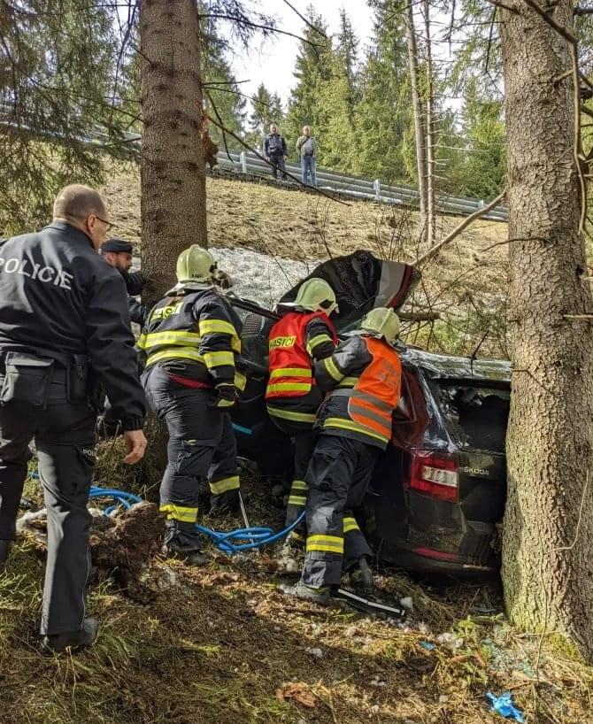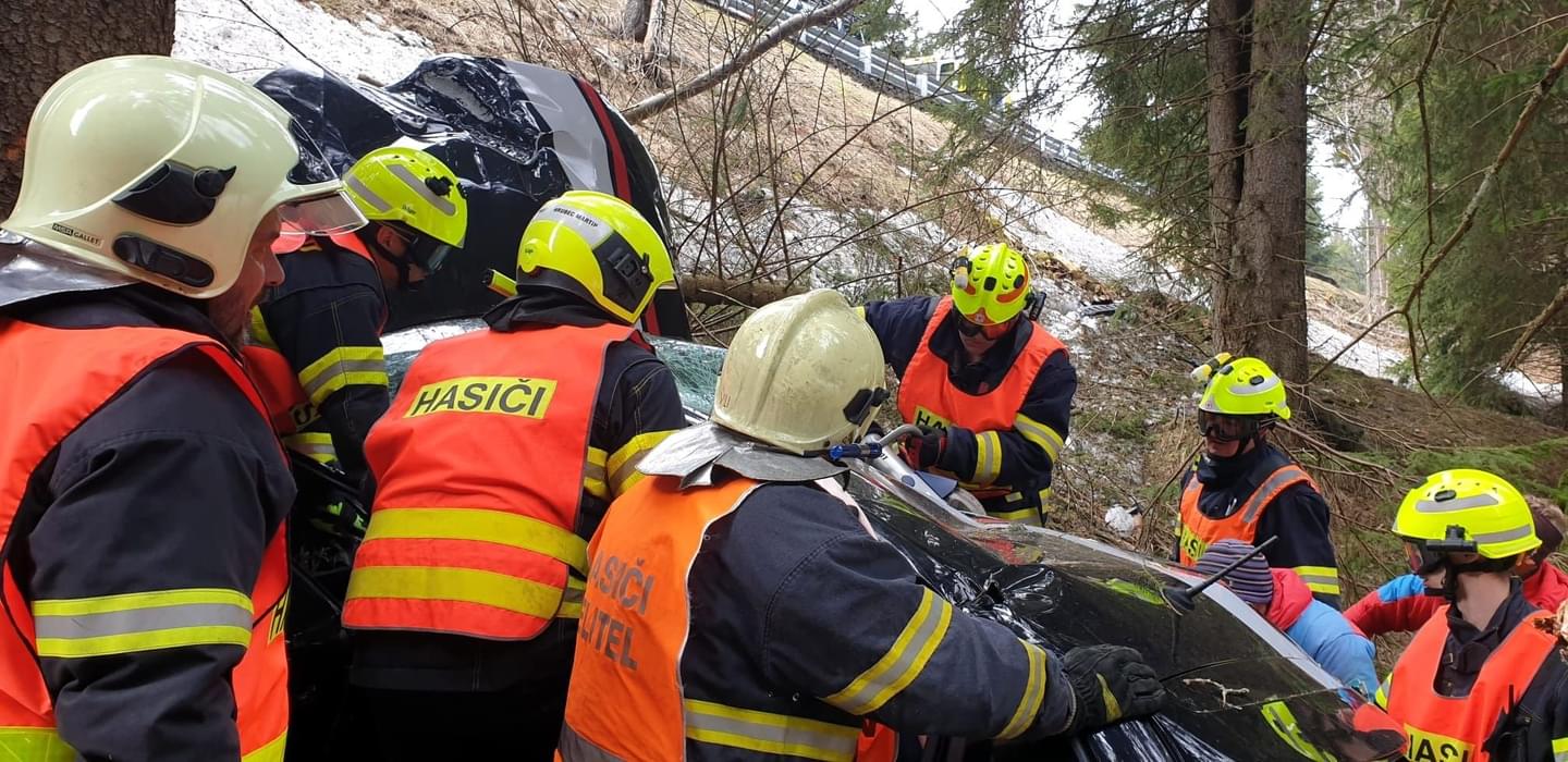 "Havarované auto bylo mimo komunikaci pod srázem, po nárazu do stromu došlo k deformaci vozidla, kvůli které bylo vyproštění muže komplikované a trvalo desítky minut. Po vyproštění si zraněnou osobu převzala posádka záchranné služby, která pro transport povolala na místo vrtulník.