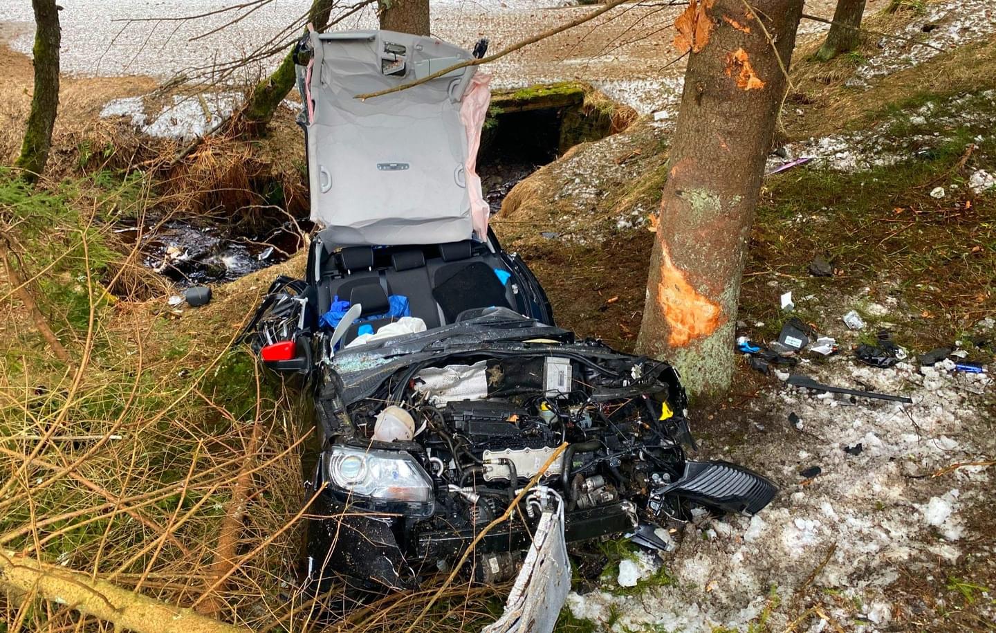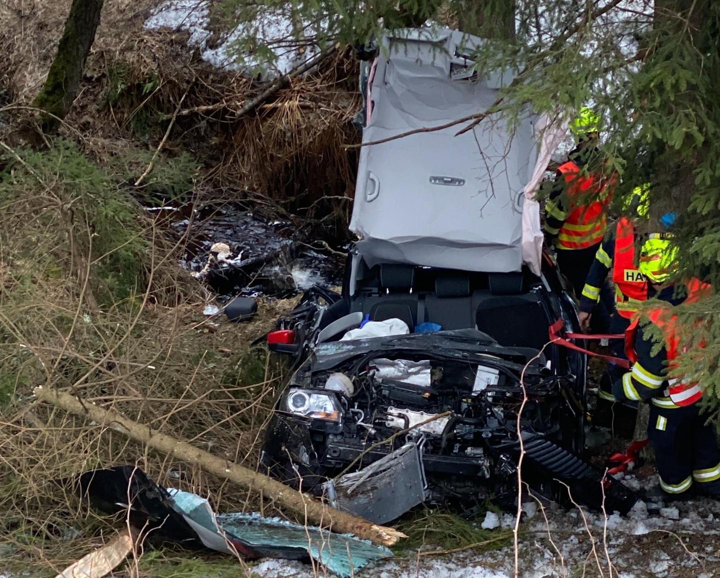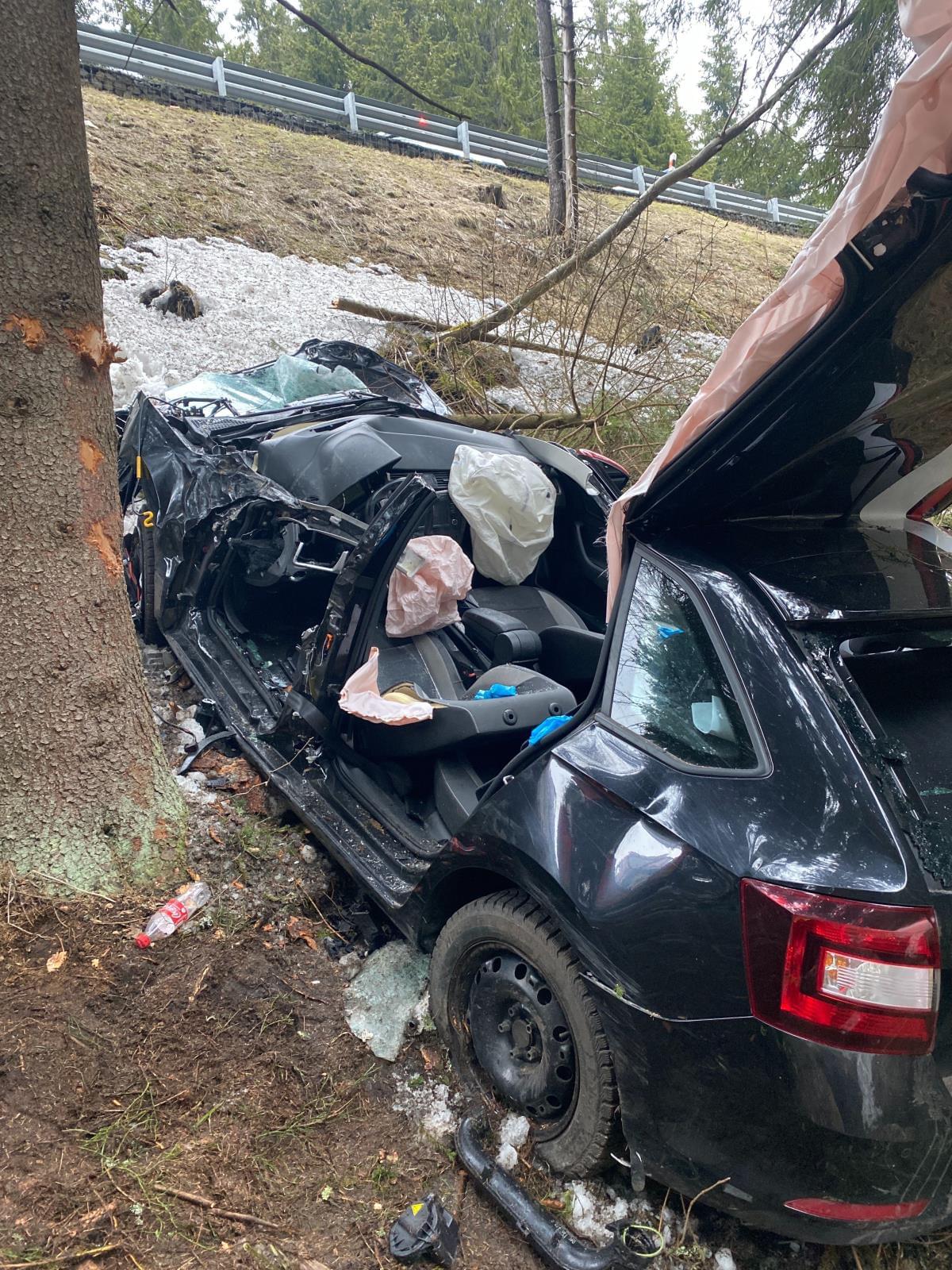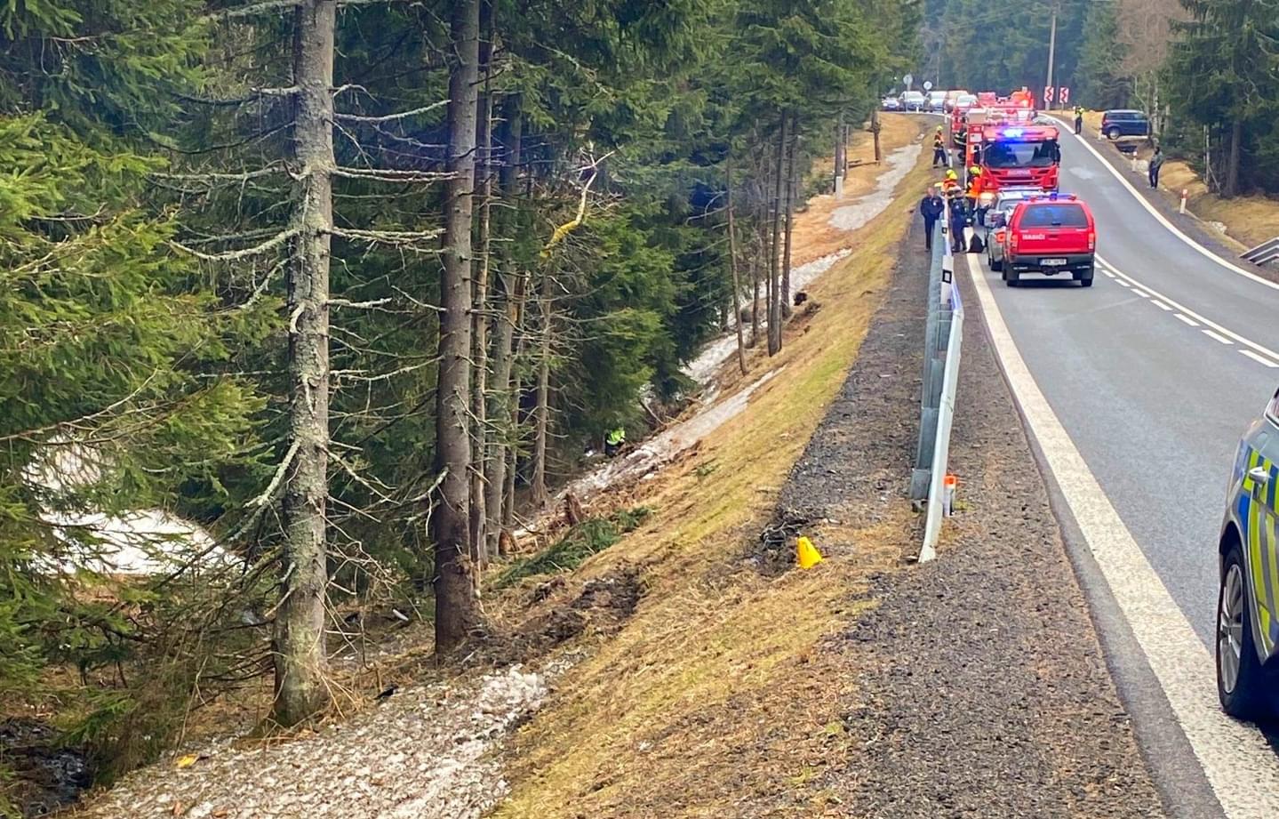 "Havarované auto bylo mimo komunikaci pod srázem, po nárazu do stromu došlo k deformaci vozidla, kvůli které bylo vyproštění muže komplikované a trvalo desítky minut. Po vyproštění si zraněnou osobu převzala posádka záchranné služby, která pro transport povolala na místo vrtulník.