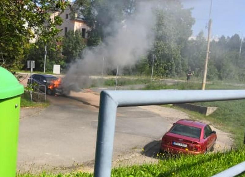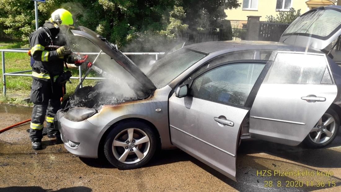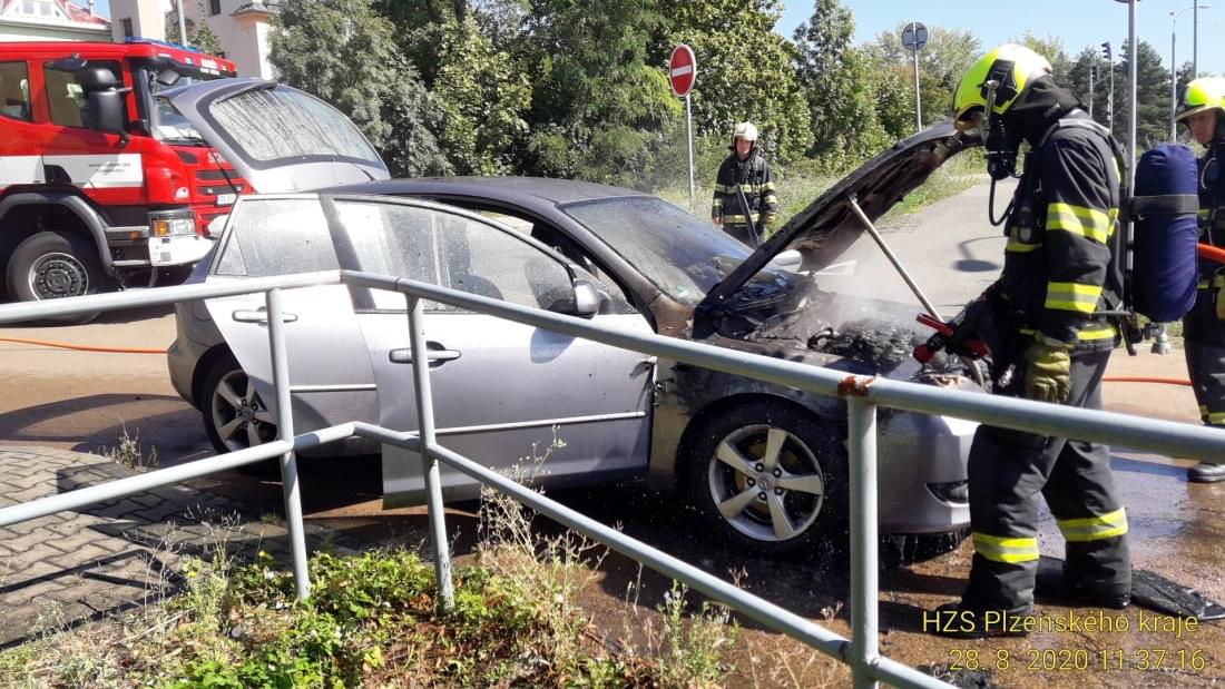 V půl dvanácté pak hasiči vyjížděli do Kotíkovské ulice k požáru osobního vozu, které začalo hořet za jízdy.