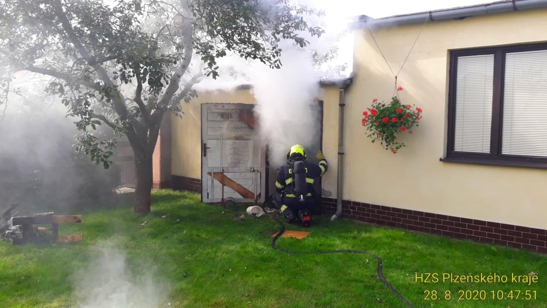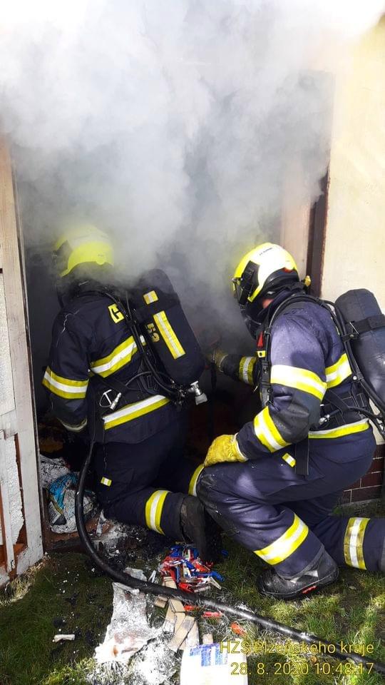 Hasiči dnes před jedenáctou hodinou dopoledne vyjížděli k domu v ulici U Staré hospody v Plzni na Slovanech, kde došlo k požáru v dílně. Hasičům se podařilo v krátké době oheň lokalizovat a následně i uhasit.