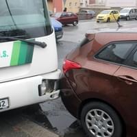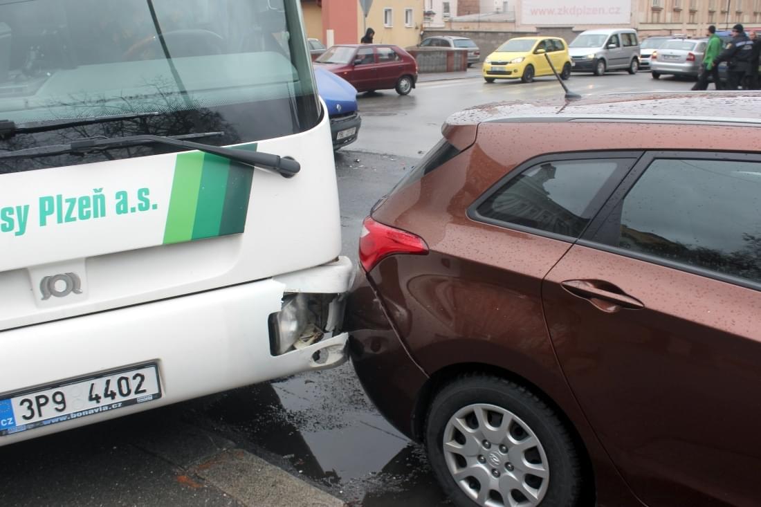 Hromadná nehoda autobusu a tří osobních vozidel